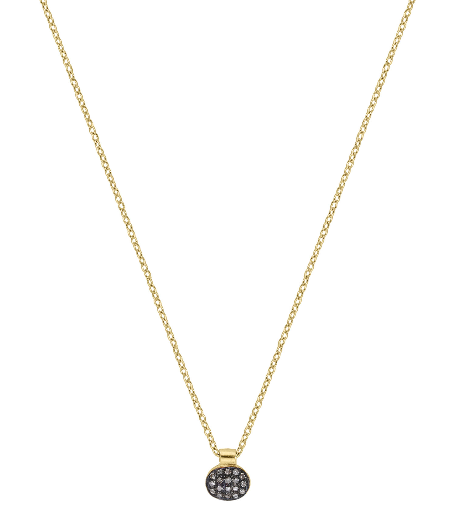 Collier Arno Small Black 5 Octobre, une pièce élégante composée d'une chaîne fîne ornée d'un pendentif ovale en argent noirci, serti en pavé de petits diamants gris clairs.