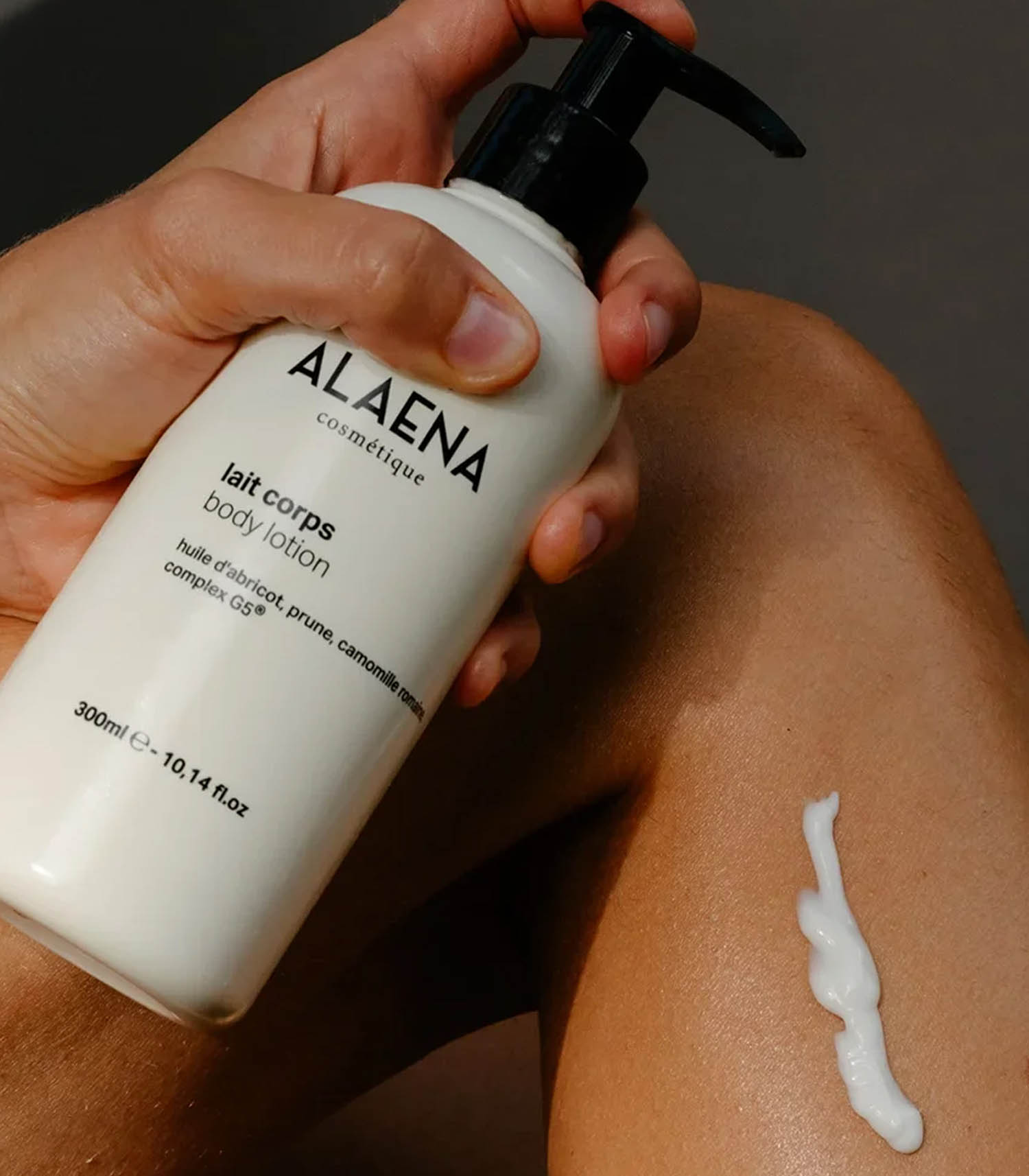 Lait Corps Alaena, conçu pour un usage quotidien afin de préserver une hydratation optimale de la peau. Sa texture est fluide et légère et pénètre ainsi facilement dans la peau. Sa formule est riche en huiles végétales d'abricot, de cerise, de jojoba et de prune pour renforcer la barrière cutanée. Le Complex G5® breveté riche en amarante et sarrasin stimule la régénération cellulaire.