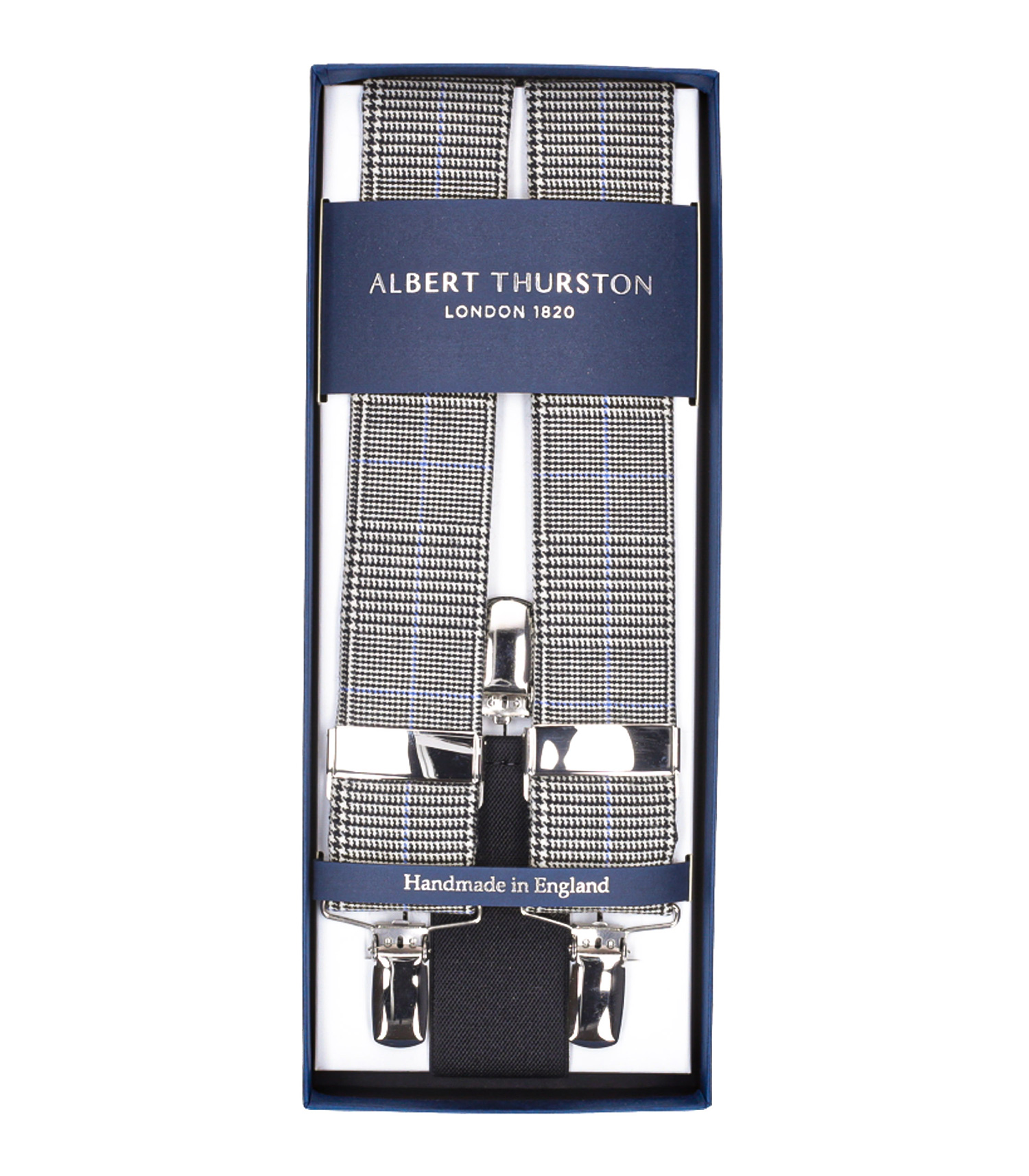 Albert Thurston remet les bretelles au goût du jour avec ses Bretelles Sutting 3 Clip à motif blanc et noir. Fonctionnel et tendance, ce modèle unisexe se porte avec un pantalon carotte et un léger pull à manches longues.