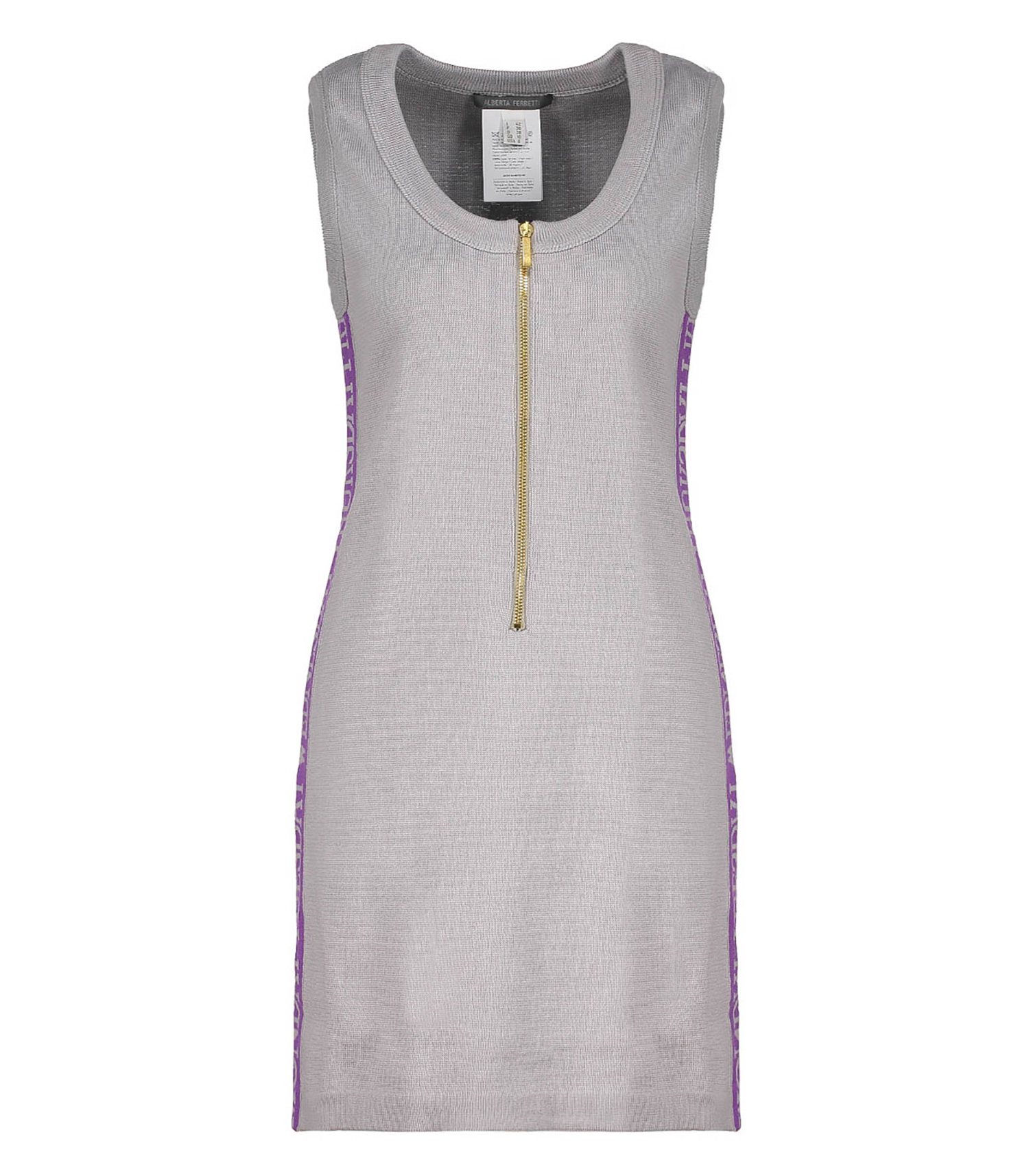Retrouvez tout le savoir-faire d’Alberta Ferretti avec cette robe zippée sans manches, à la fois décontractée et élégante. Elle se démarque par un large ruban coloré sur les côtés du modèle qui arbore les inscriptions « Monday-Tuesday » et une fermeture zippée à l’avant.