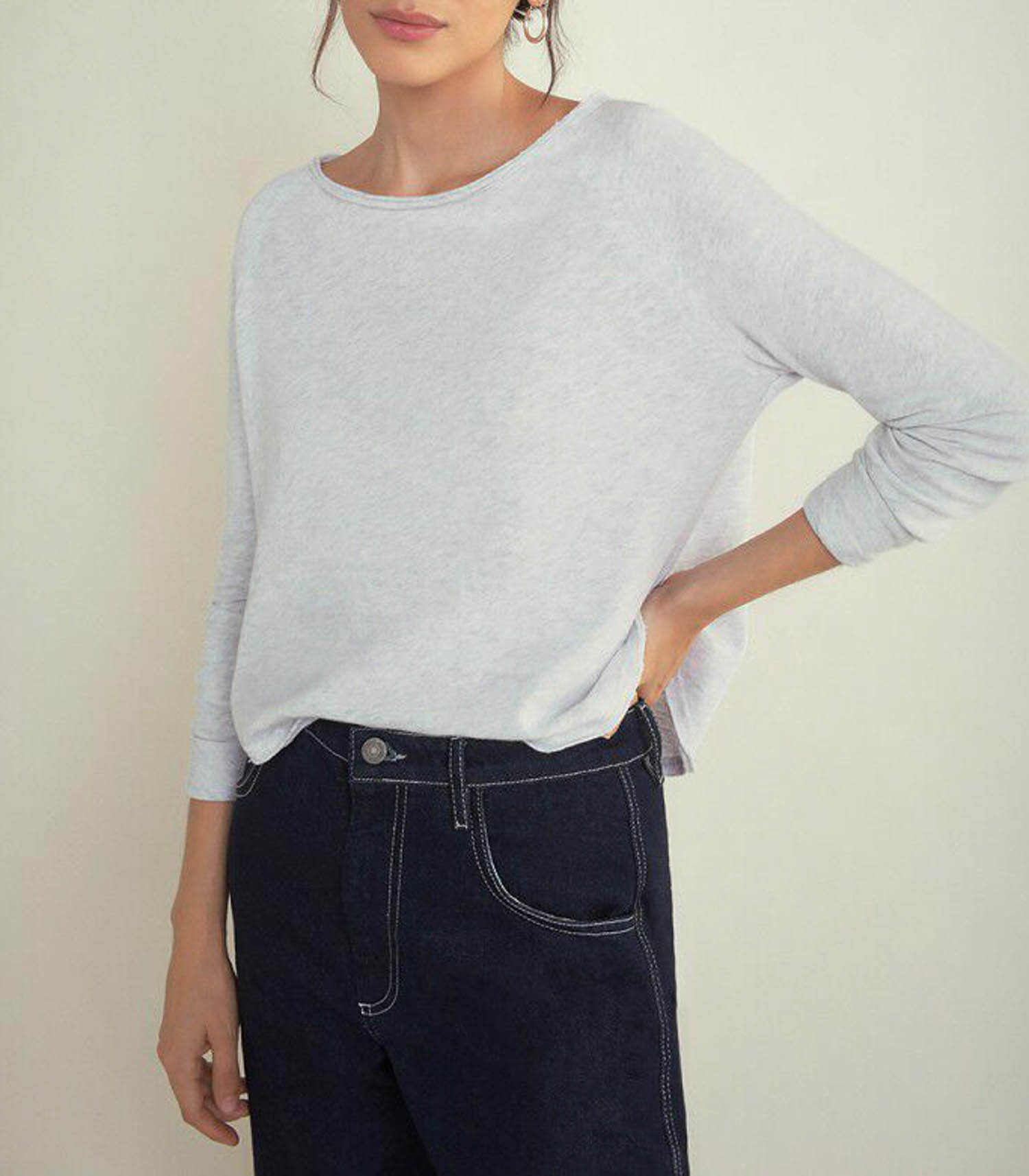 Tee-shirt Sonoma manches longues Arctique chiné signé American Vintage, iconique et intemporel, qui vous durera des années. Parfait avec un simple jean et des baskets.