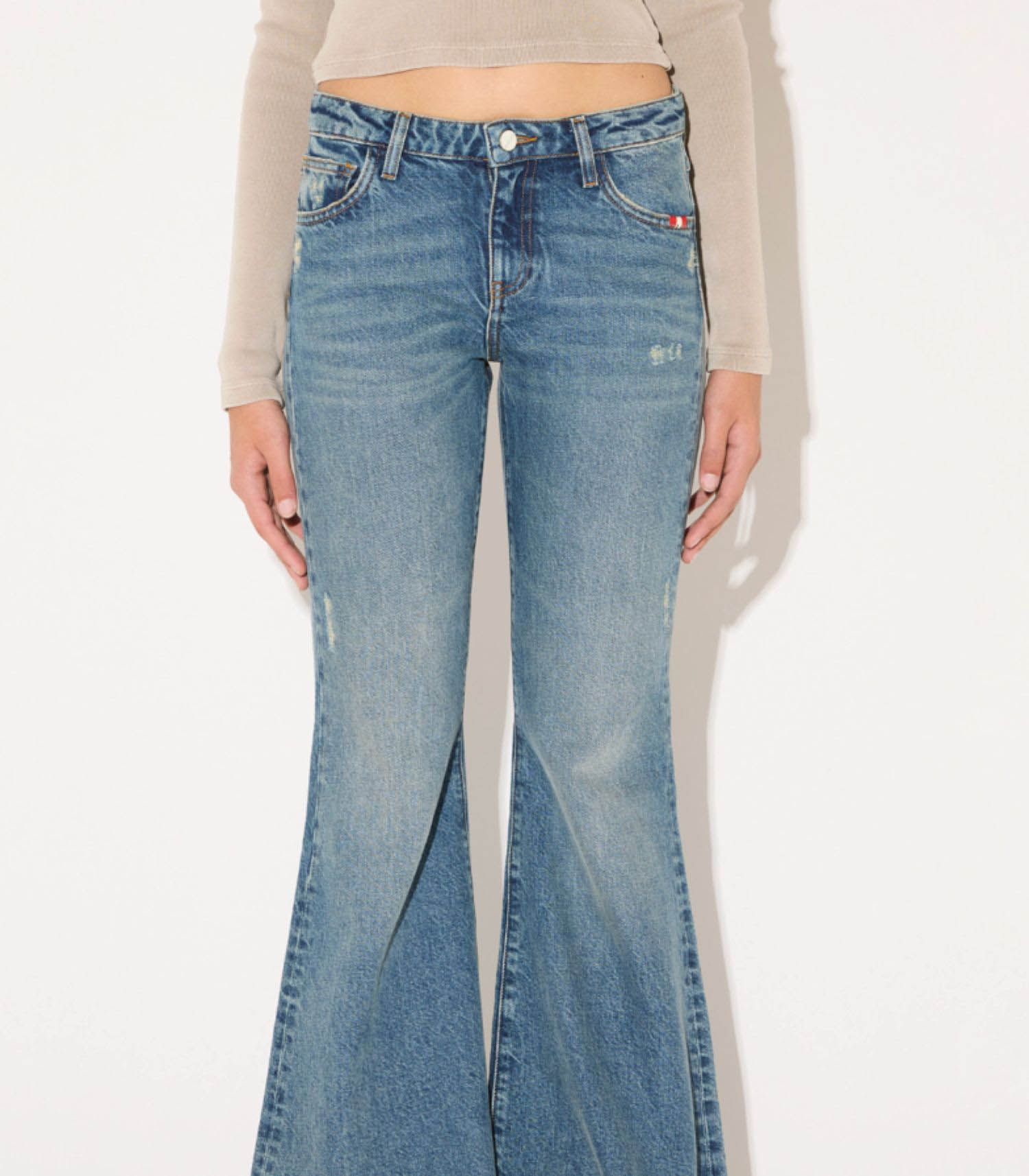 Le Dust Woodstock Jeans séduit par son denim clair “light-wash dust”, qui lui confère une allure à la fois moderne et subtilement usée. Il présente une taille moyenne dotée de passants, une fermeture par zip et un bouton siglé, ainsi qu’une étiquette au dos et un petit passant logo qui ajoutent une signature distinctive. Deux poches à l’avant et deux poches arrière, agrémentées d’une broderie contrastée, complètent le design.