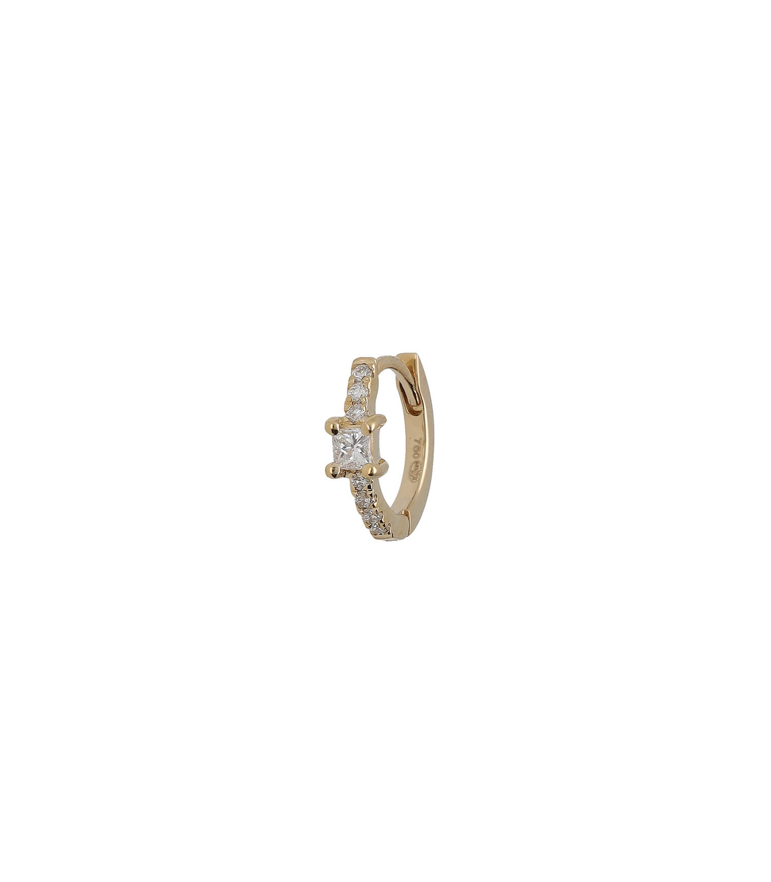 Boucle d'oreille Créole en Or demi pavée diamants princesse de la marque And... Paris. Chaque diamant, soigneusement serti, révèle un éclat étincelant qui capture la lumière avec grâce et élégance. Portez-la pour ajouter une touche de luxe à chaque tenue, affirmant ainsi votre style avec un charme indéniable.
