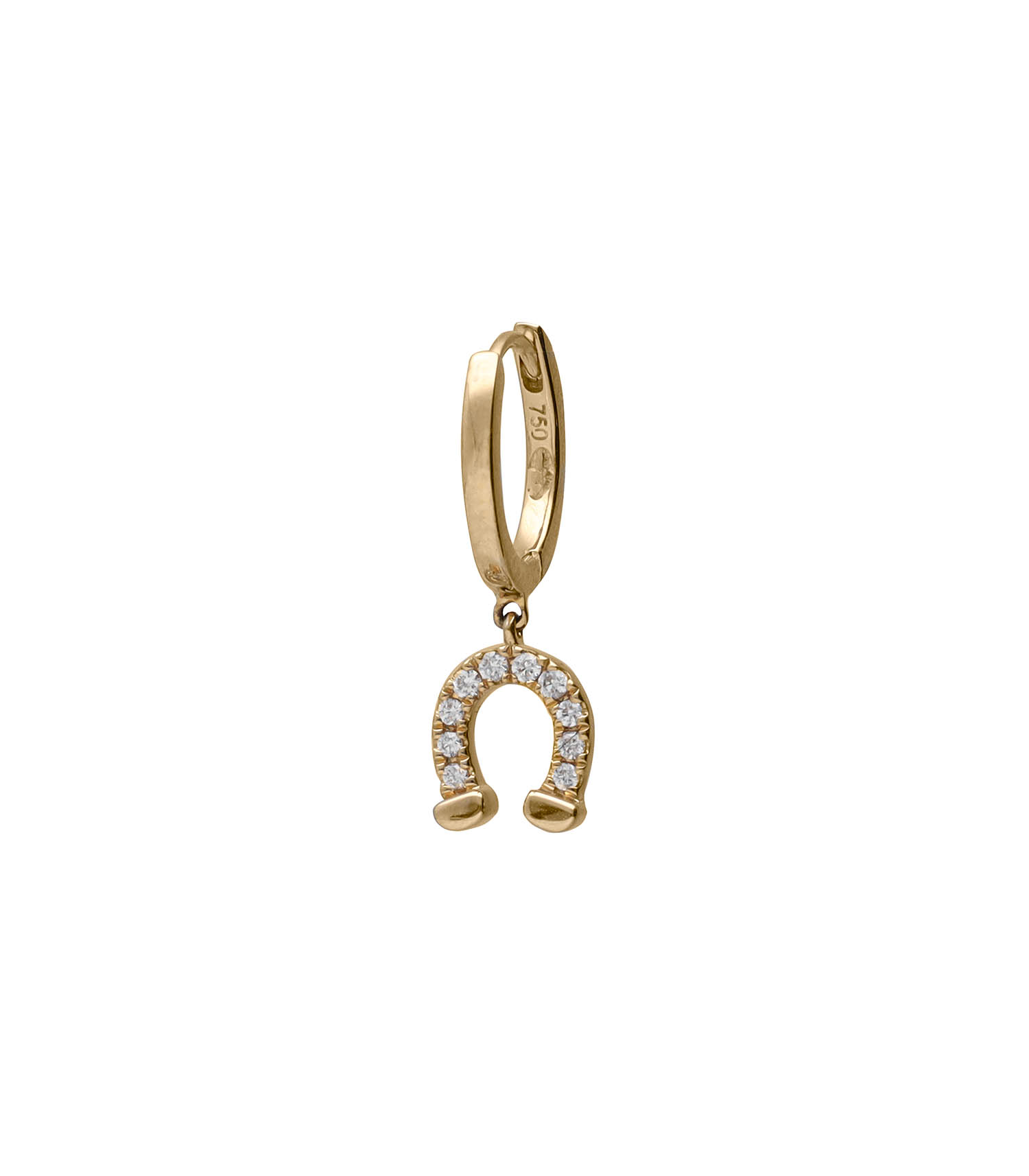 Boucle d'oreille créole or jaune et Fer à cheval en diamants signée And...Paris. Cette mini-créole en or jaune 750/1000 est un petit porte-bonheur, argémenté d'un fer à cheval en or et serti de diamants blancs.