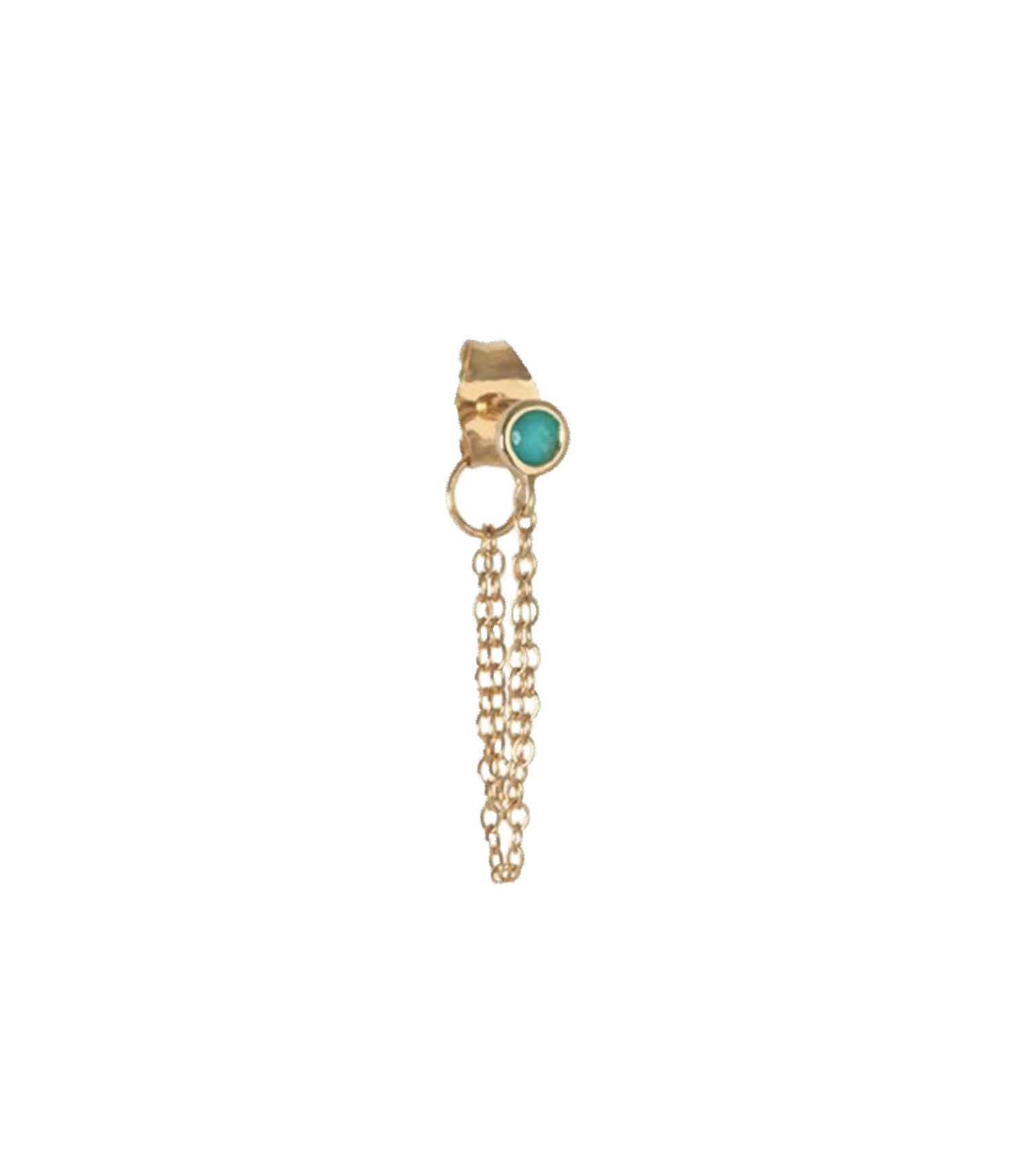 Boucle d'oreille double chaîne or jaune et 1 turquoise