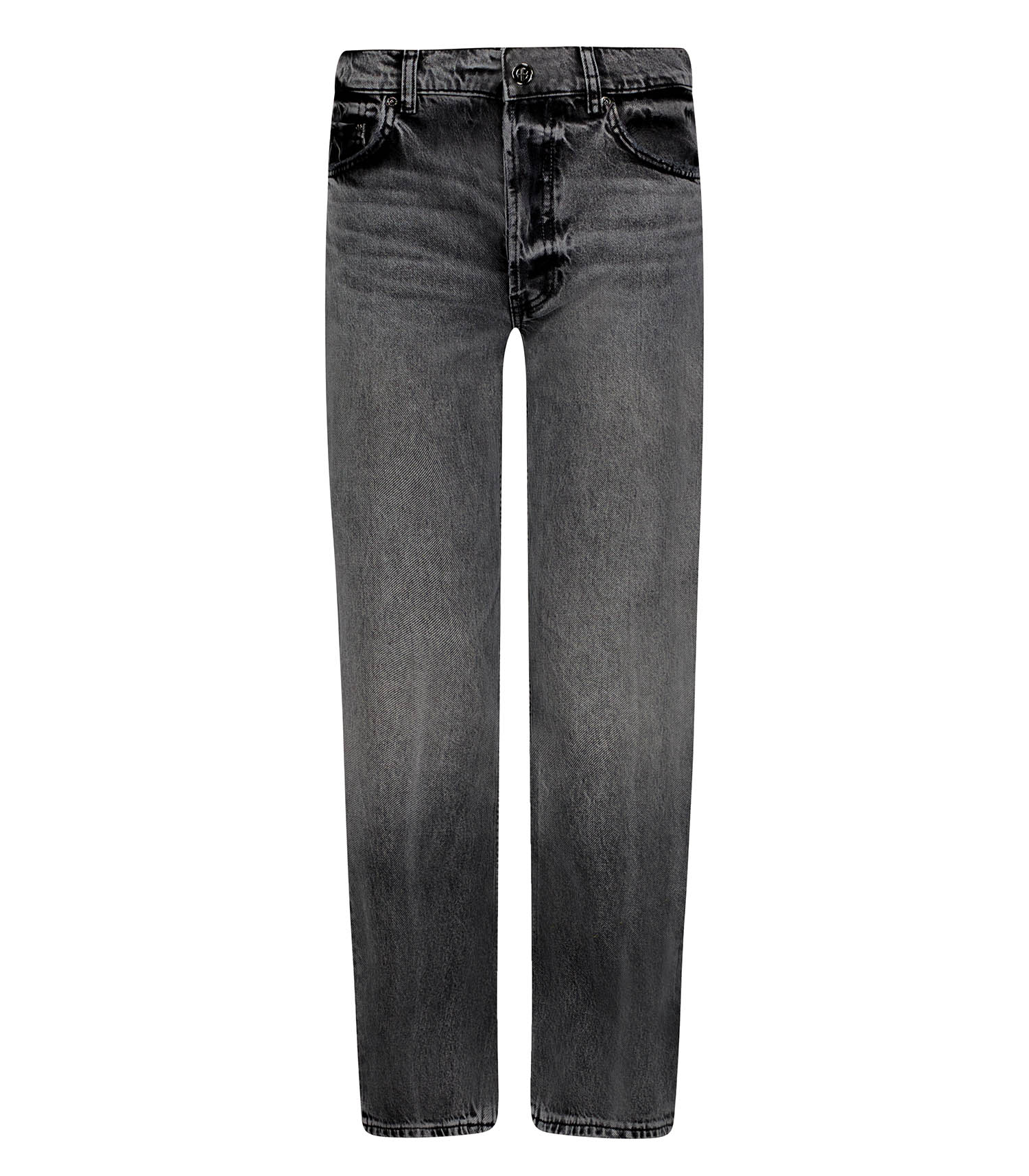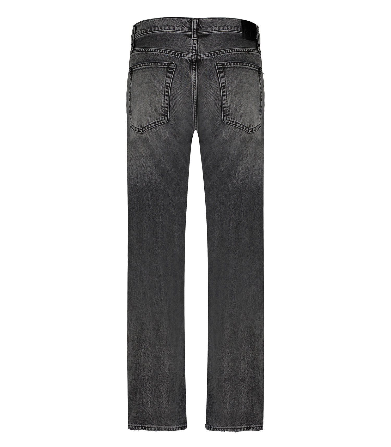 Jean Kate Steel Grey de la marque Anine Bing. Confectionné en denim de coton régénérant rigide de poids moyen, le Kate Jean incarne l’équilibre parfait entre authenticité et modernité. Son délavage gris anthracite, subtilement vieilli par des abrasions et frottements inspirés du vintage, lui confère une allure brute et intemporelle. Un incontournable du vestiaire pour un style effortless et affirmé.