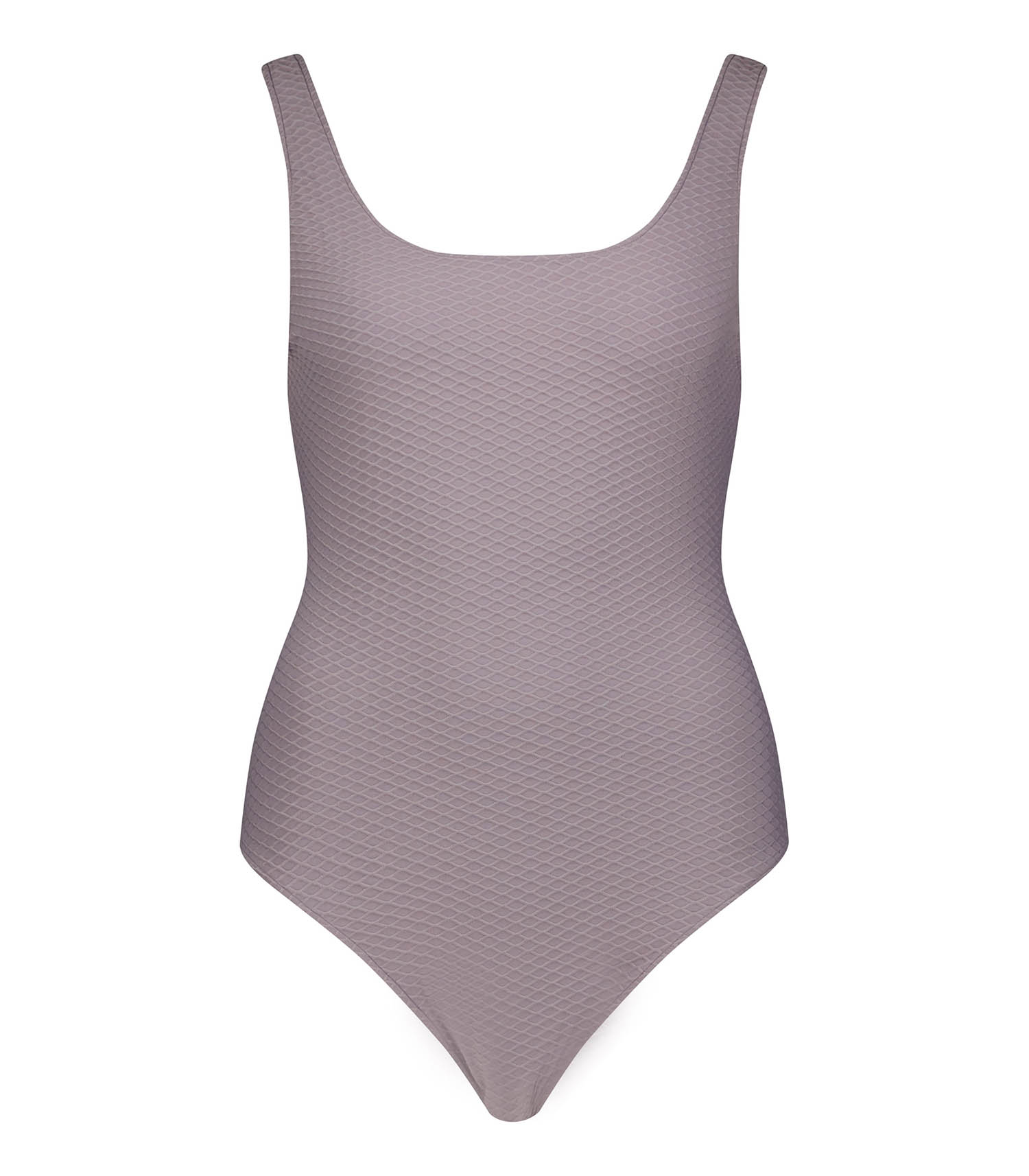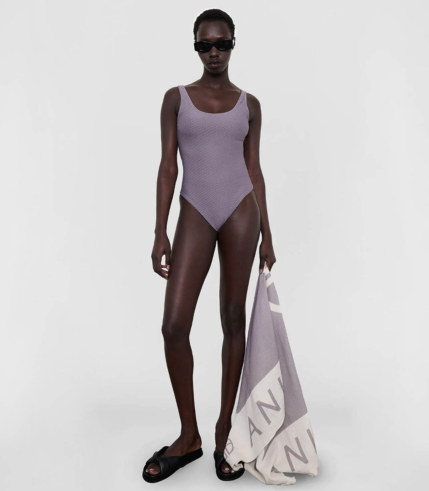 Colorez votre été avec le maillot de bain une pièce Jace Violet signé Anine Bing, un élégant modèle à fines bretelles et à dos nu au fini texturé. On l'accompagne d'une paire de sandales, d'un paréo et de son cabas favoris.