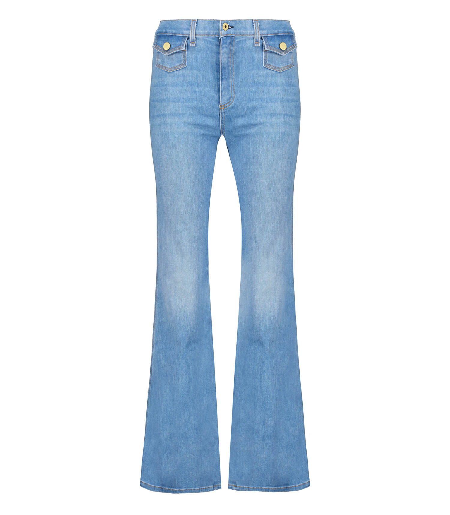 Jean 70s Boot Limey de la marque ASKK NY. Un jean bootcut à la taille haute dans un esprit délicieusement seventies. Le détail des petites poches boutonnées à l'avant renforcent le côté rétro, tandis que la toile japonaise de teinte indigo délavé permet une tenue impeccable.
