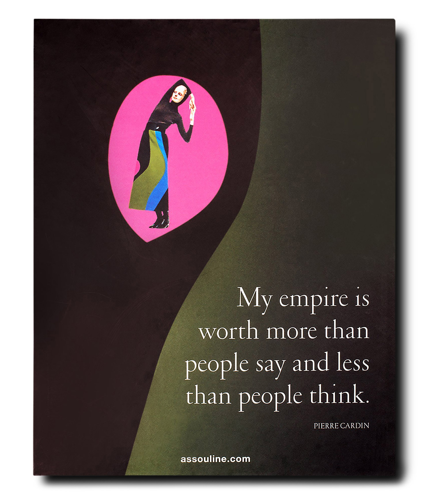 Le légendaire créateur de mode français Pierre Cardin célèbre 70 ans de création dans cet ouvrage aux éditions Assouline. Citoyen du monde, il reste aujourd'hui une personnalité incontournable, avec une marque incontournable implantée dans 110 pays à travers le monde. Les créations uniques et futuristes de ce couturier visionnaire, de la robe Bubble à la ligne Cosmocorps, témoignent de son appétit farouche pour l’expérimentation. Premier couturier à avoir transformé son nom en une marque mondiale, l’univers créatif varié et ambitieux de Pierre Cardin s’étend dans de nombreux autres domaines, des accessoires, bijoux et parfums à la décoration intérieure, aux bons restaurants et à un festival annuel des arts.