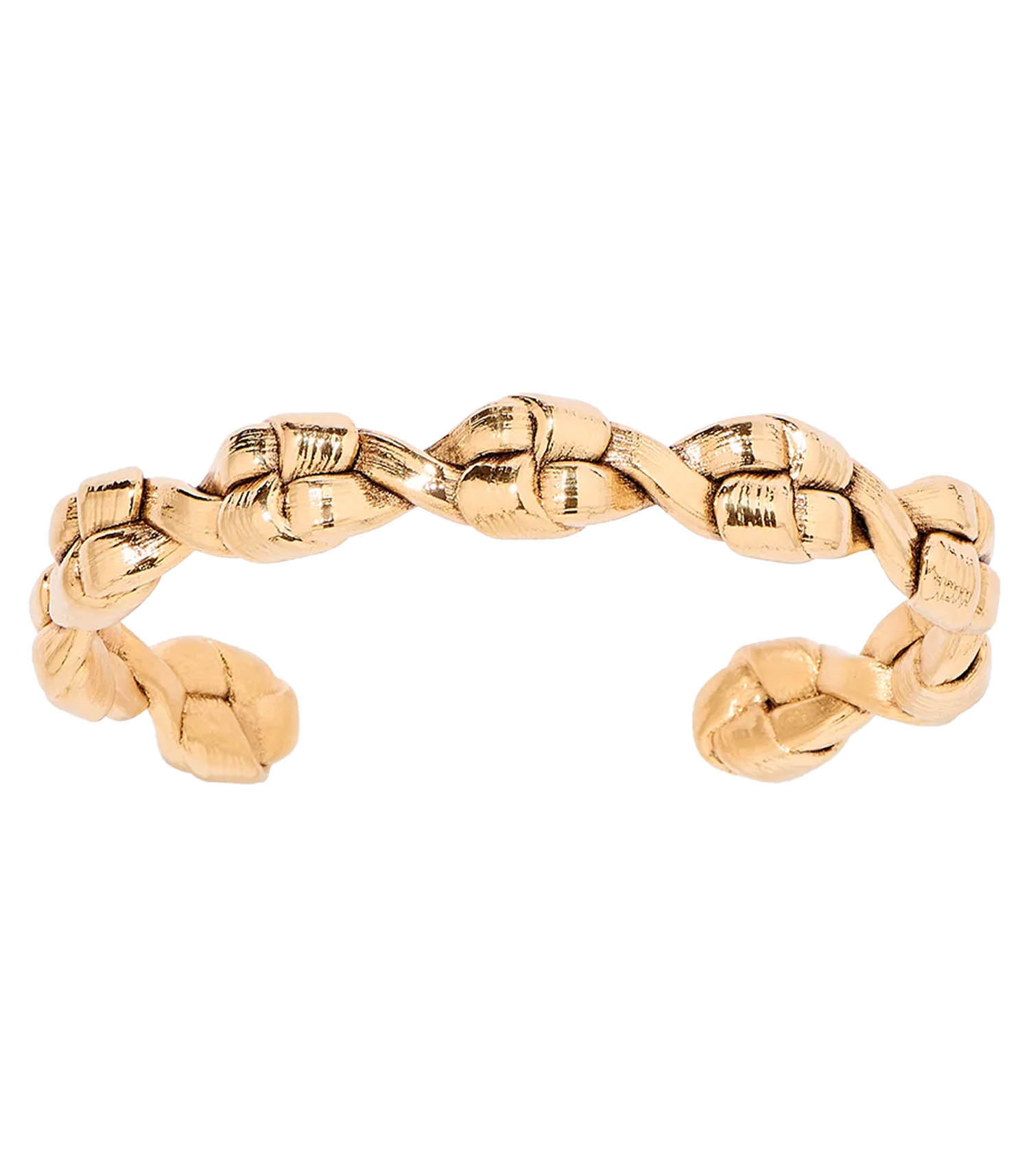 Jonc Maddock signé Aurélie Bidermann inspiré d'un tressage végétal façon bambou. Joli effet doré et strié authentique et précieux.