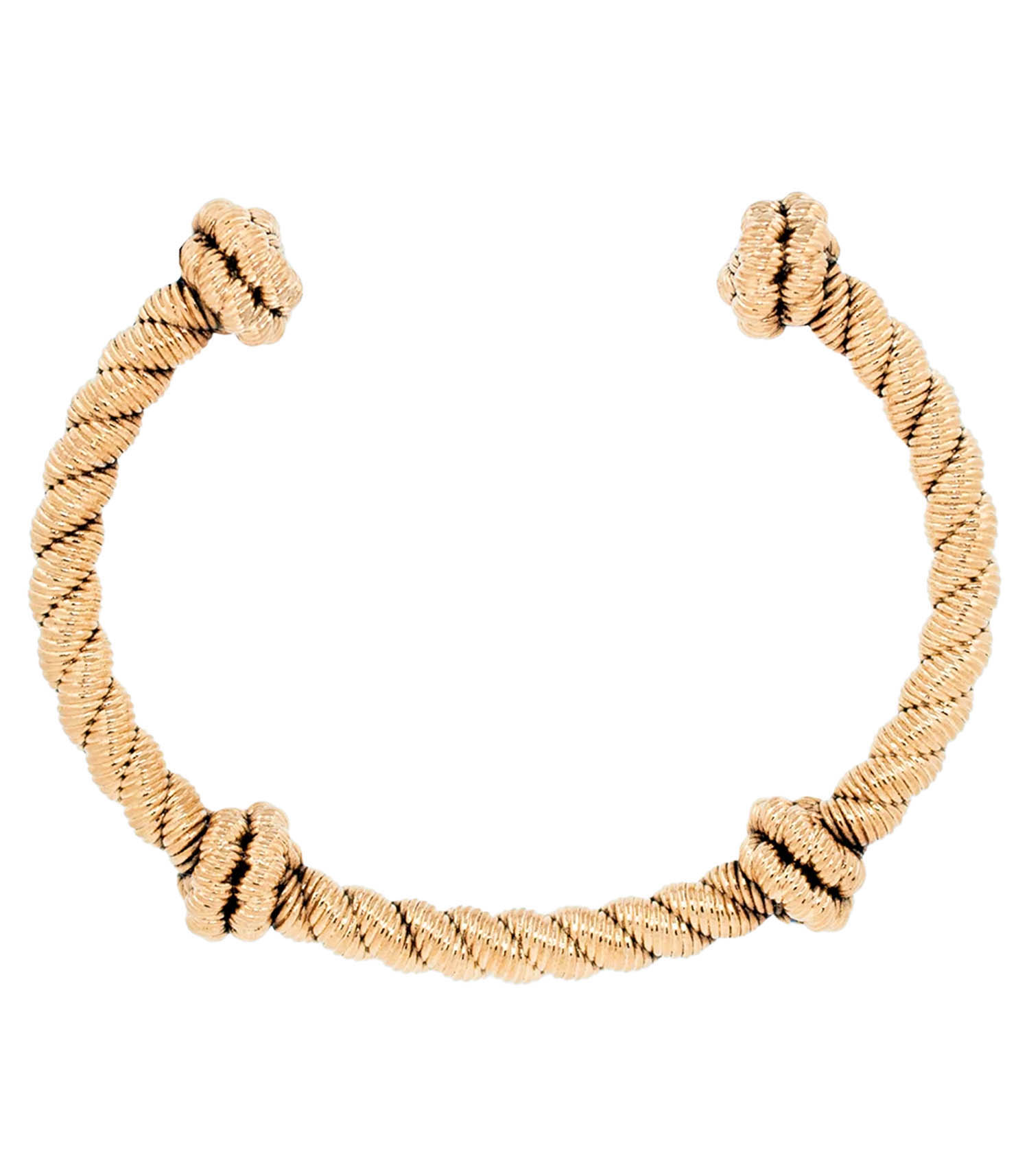 Jonc Palazzo signé Aurélie Bidermann. La ligne Palazzo aborde une finition ciselée et dorée dans un esprit anthique et précieux. Ce jonc effet corde torsadée et noeuds offre un esprit