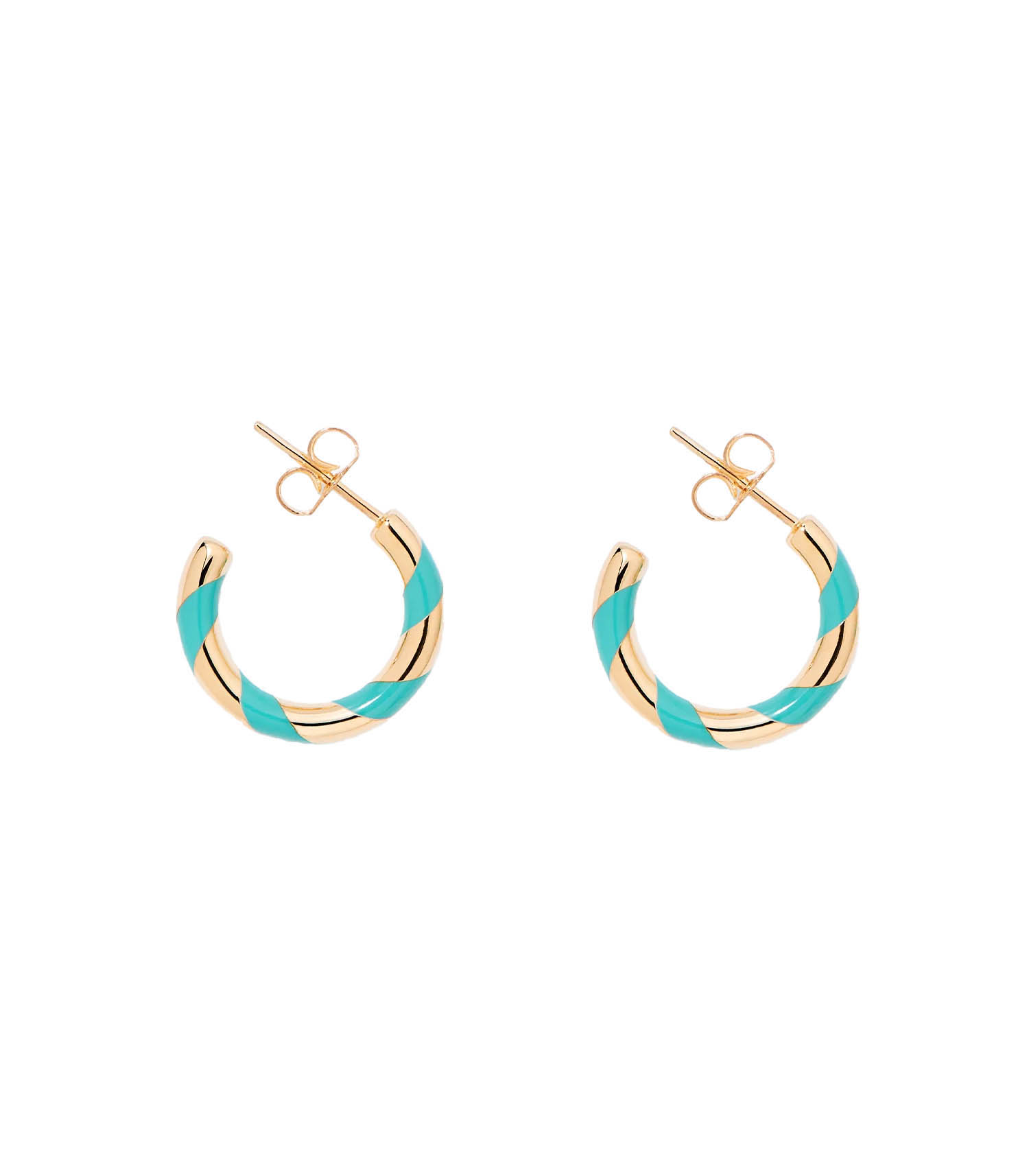 Mini créoles Positano à rayures acqua en résine et dorées à l'or jaune 750/1000.