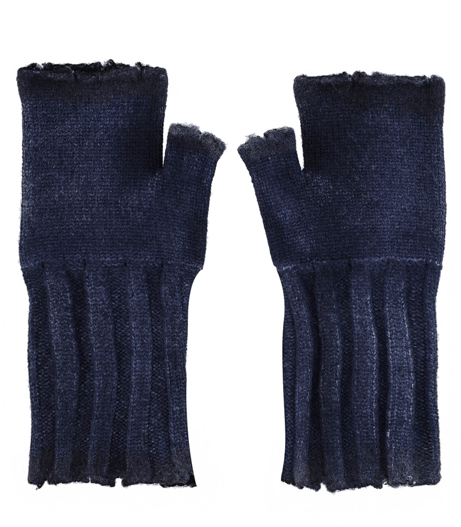 Mitaines courtes Midnight de la marque Avant Toi, une paire de gants ouverts en maille à effet destroy. Détail côtelé aux poignets.