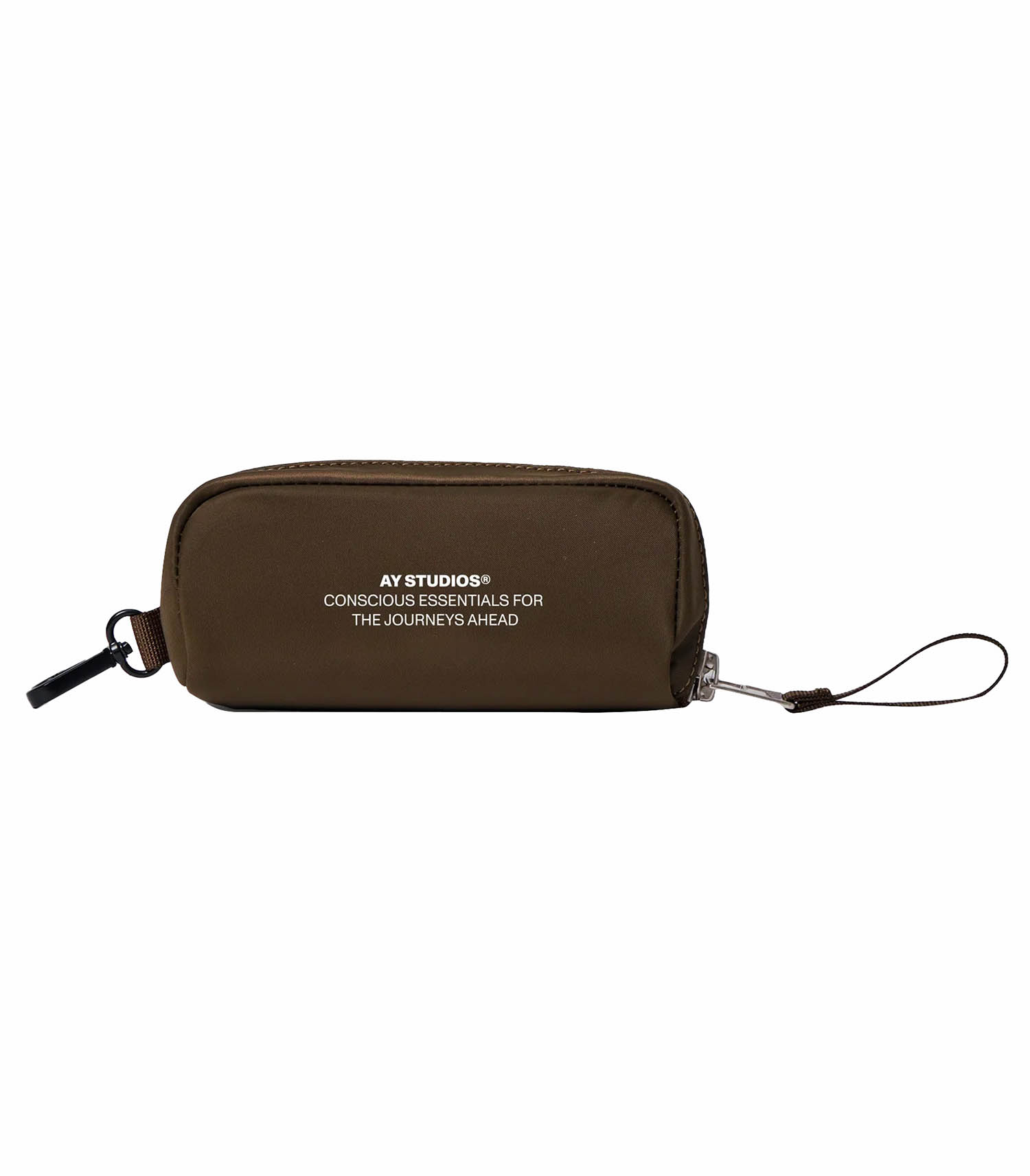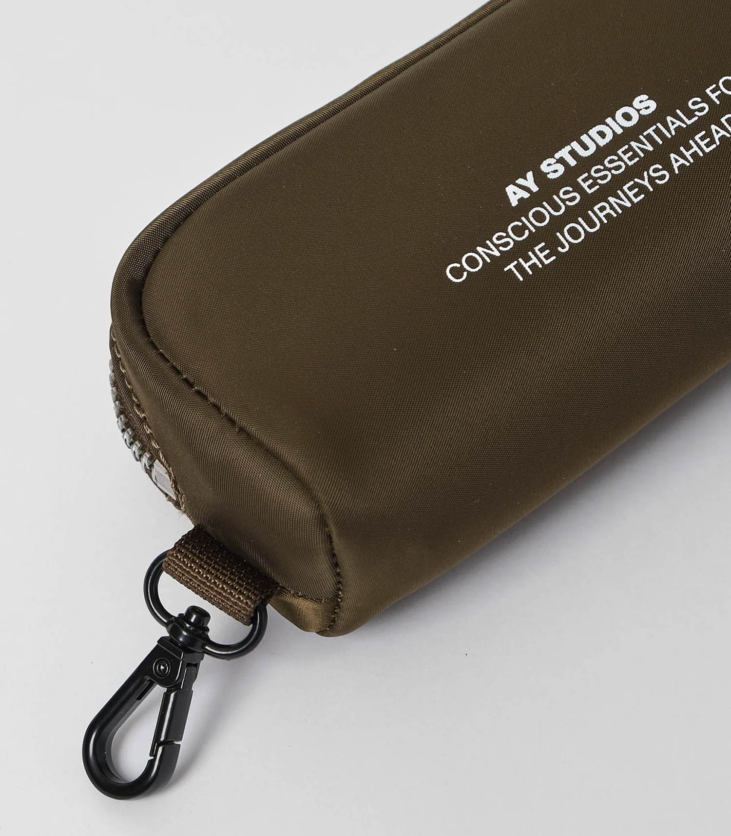Optez pour la trousse en nylon recyclé résistante à l'eau d'AY Studios, équipée de fermetures éclair de haute qualité spécialement conçue pour les voyageurs modernes. Grâce à son mousqueton, vous pouvez facilement la fixer à un sac de la même collection.