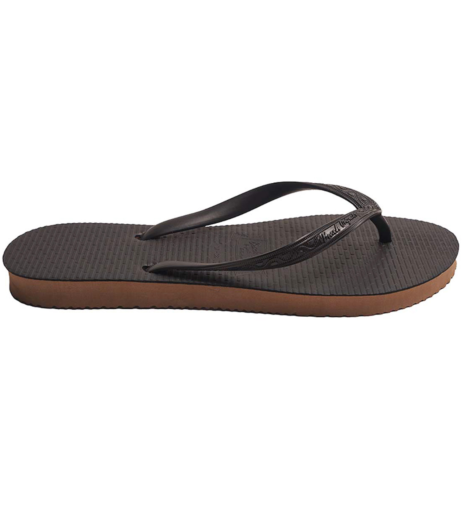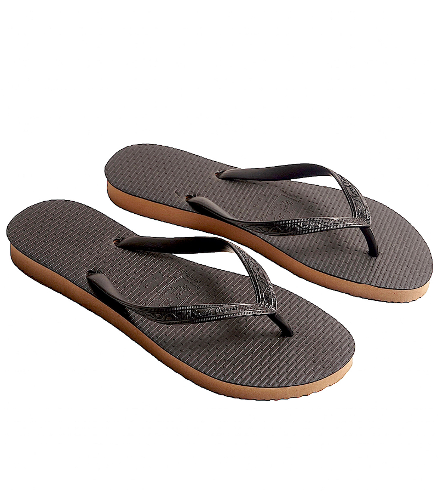 Premier coloris traité en ton sur ton, les tongs Beach Original Chihuahua Onyx Noir abordent un look sombre très chic avec une semelle du même coloris. Les côtés de la semelle sont bruns pour contraster et maintenir le côté héritage du modèle.