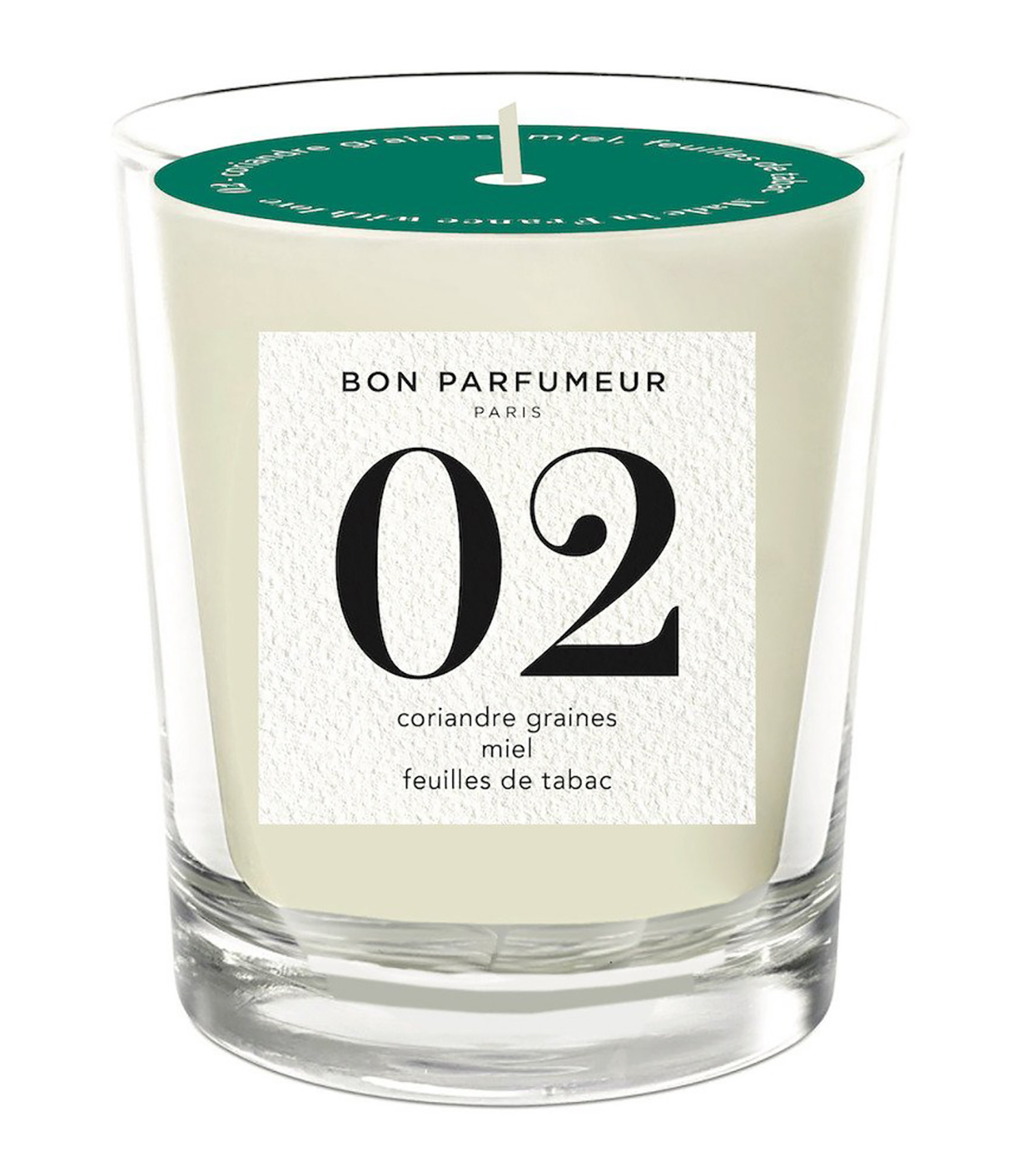 Bougie parfumée 02 Graines de Coriandre, Miel et Feuilles de Tabac de la maison Bon Parfumeur. Une bougie parfumée à la fois animale et chaleureuse, aux accents fruités et ensoleillés. Un parfum vivifié par des notes de Lavande de Provence et des graines de Coriandre, un cœur miéllé accompagné d’Ylang-ylang des Comores et d'une pointe d’Anis, et enfin un fond aux notes gourmandes de la fève tonka.