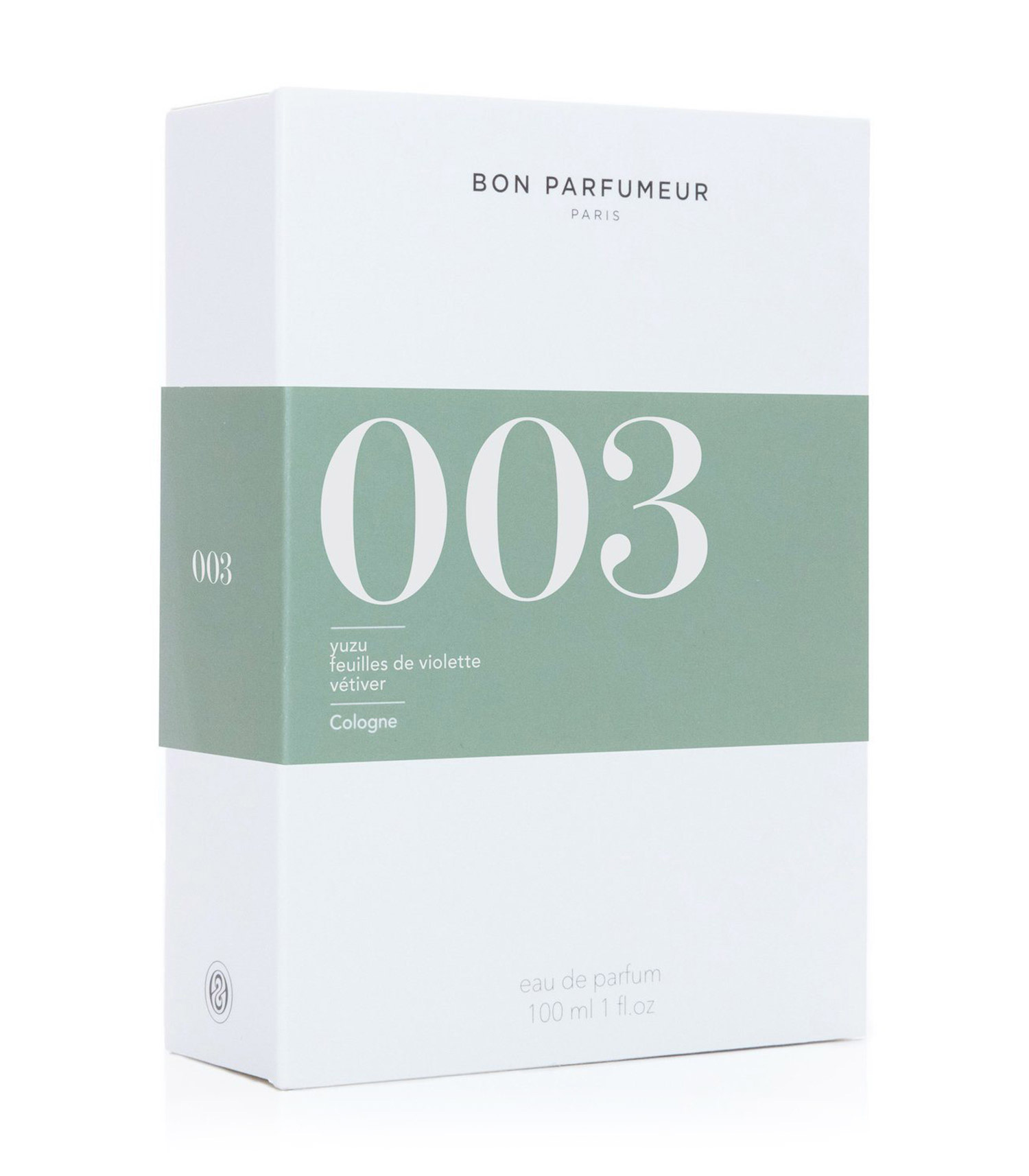 Coup de coeur pour l'allure verte, vivifiante et élégante de la Cologne intense 003 au yuzu, feuilles de violette et vétiver de Bon Parfumeur, un parfum végétal résolument rafraîchissant.