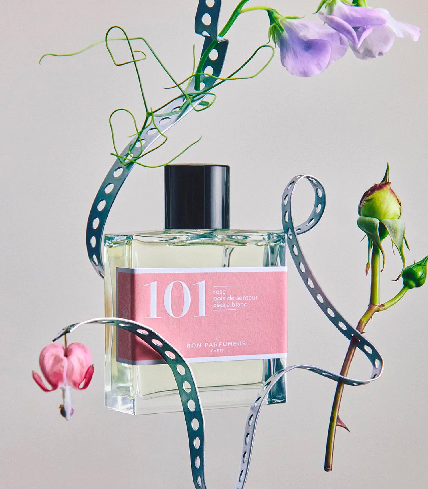 Bon Parfumeur dévoile son Eau de Parfum 101 Rose, Pois de senteur et Cèdre blanc au format 30 ml, idéal à transporter partout avec soi. La rose de Damas, reine des roses, est au centre de cette composition fraîche et florale. Imaginée par Alexandre Monet, cette eau de parfum est ponctuée d'une note de patchouli venant apporter caractère au tout.