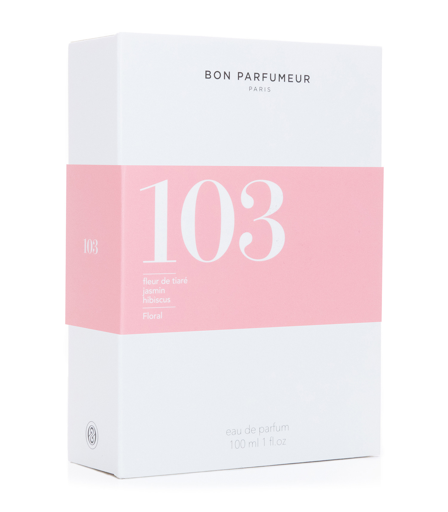 Bon Parfumeur illustre tout son savoir-faire et son goût pour les fragrances d’exception avec cette eau de parfum florale : le 103 — fleur de tiaré, jasmin, hibiscus 100 ml. Elle s’ouvre sur un accord frais de bergamote révélé par un cœur de jasmin, de gardénia et d’héliotropine sur un fond vanillé et musqué.