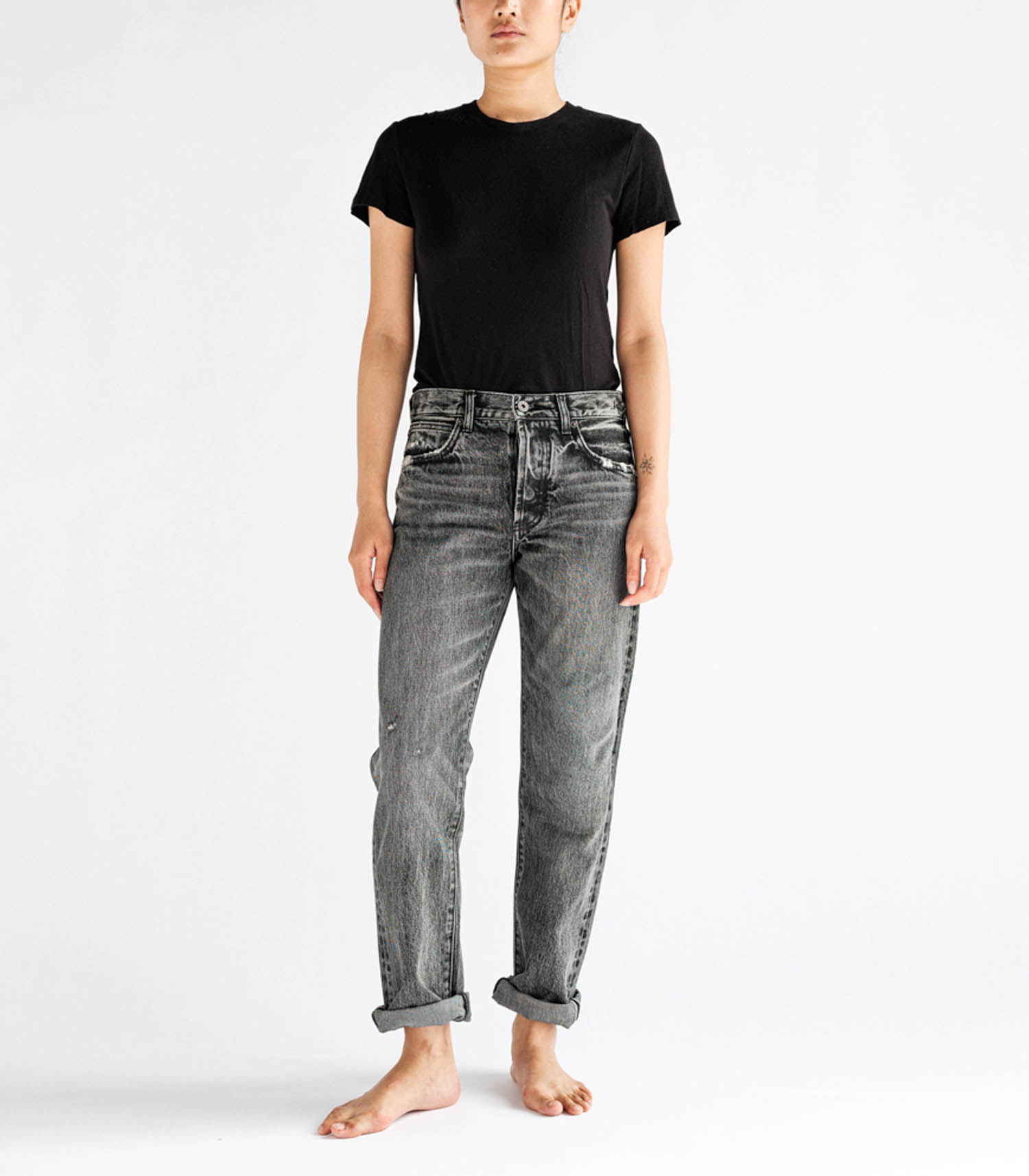 Jean Osaka Deep In The Heart signé Boro. Modèle intemporel aux détails éffilochés. De part son coloris gris, ce jean s'associe facilement à votre haut du moment. On peut le porter comme le mannequin, en faisant des ourlets pour un effet plus travaillé.
