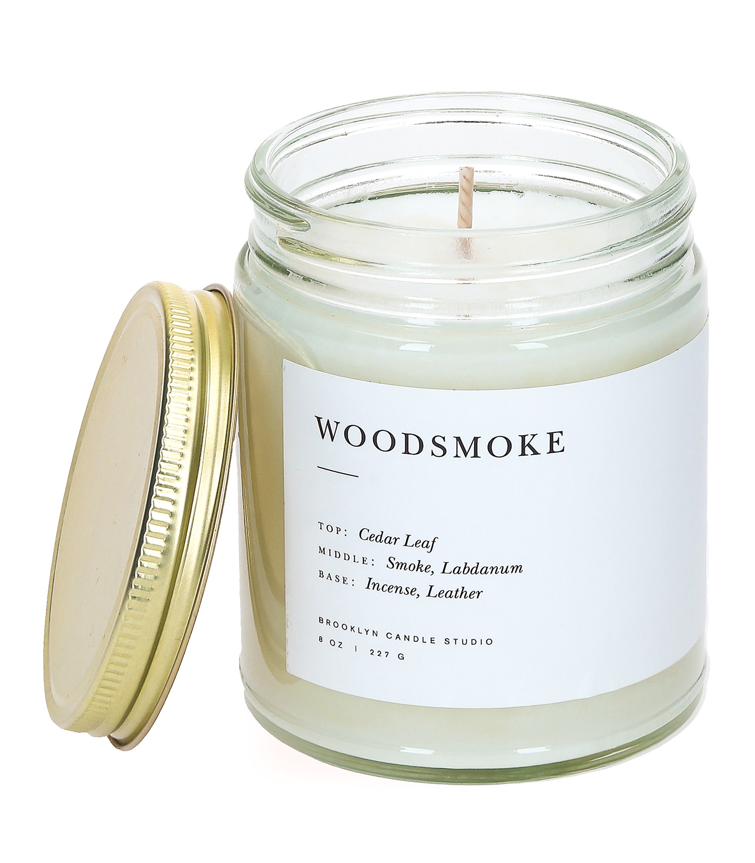 Bougie végétale parfumée Minimalist Woodsmoke de la maison américaine Brooklyn Candle, le réconfort de la senteur d'un feu de cheminée. Ses notes chaudes de feuilles de cèdre, de labdanum, d'encens et de cuir. Cette bougie est une carresse et donne l'impression d'être lové dans une couverture.