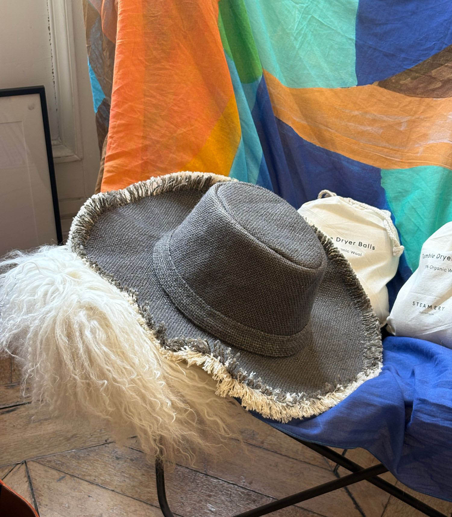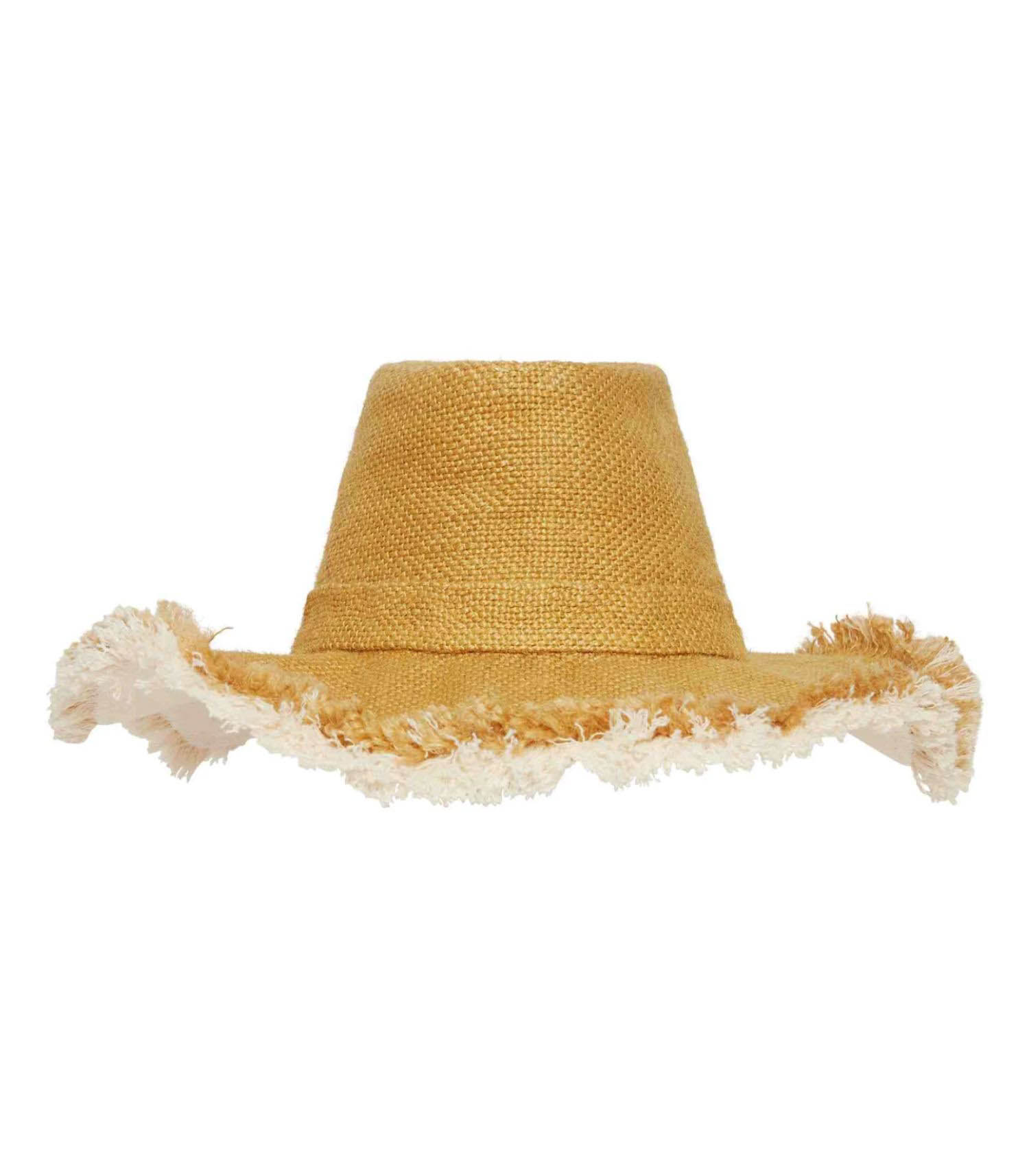 Confectionné en fibre de jute brute couleur moutarde délavée par le soleil, le chapeau Meyo incarne un esprit minimaliste inspiré du désert. Sa forme structurée et son large bord allient esthétique et protection solaire, tandis que ses bords effilochés à la main et ses détails bicolores subtils rendent hommage à un savoir-faire authentique.