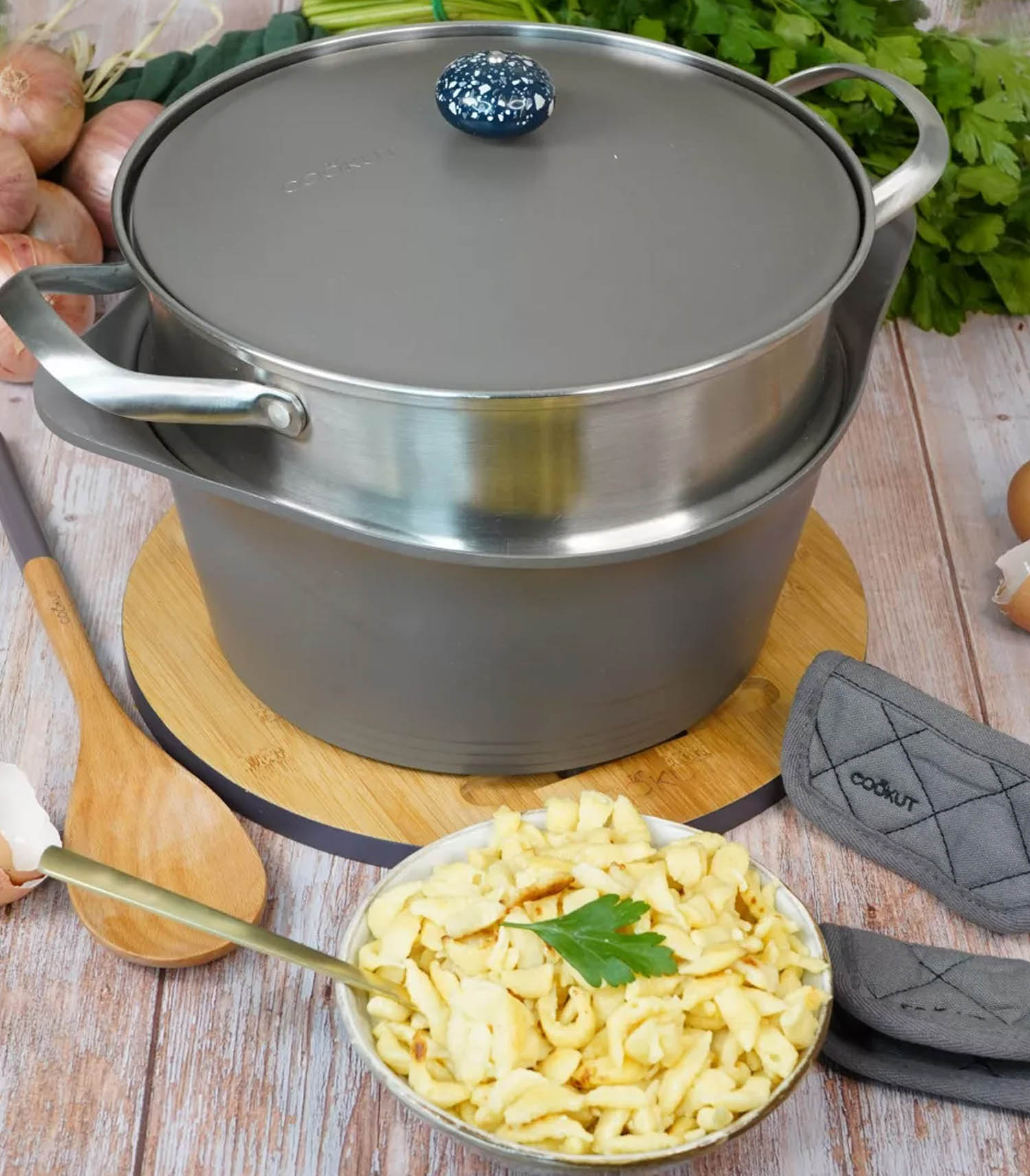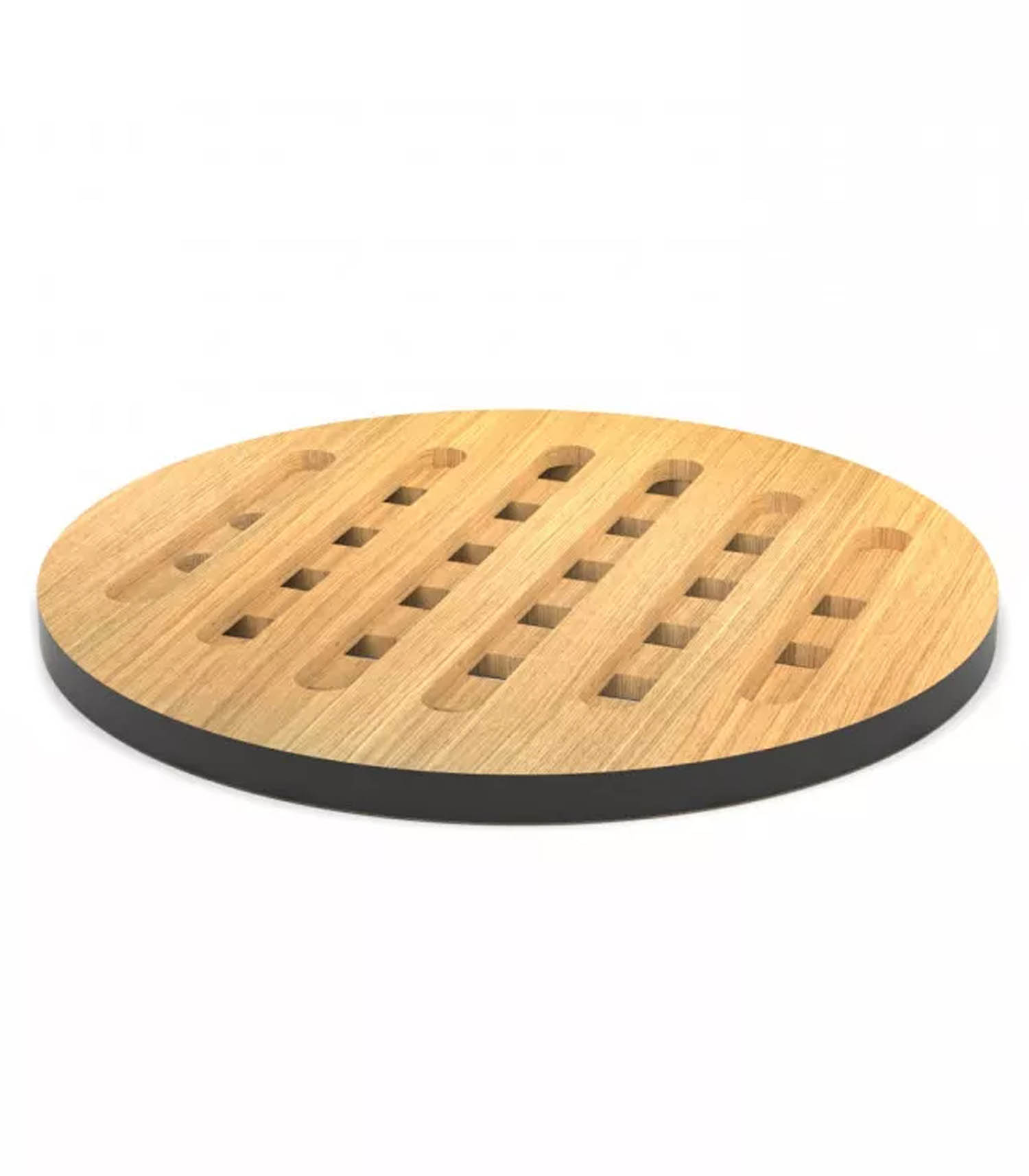 Dessous de plat en bambou signé Cookut, au design sobre et élégant. Avec son coloris bambou et Graphite, il s'accorde parfaitement avec l'Incroyable Cocotte. Convient aussi bien aux cocottes 24 que 28 cm.