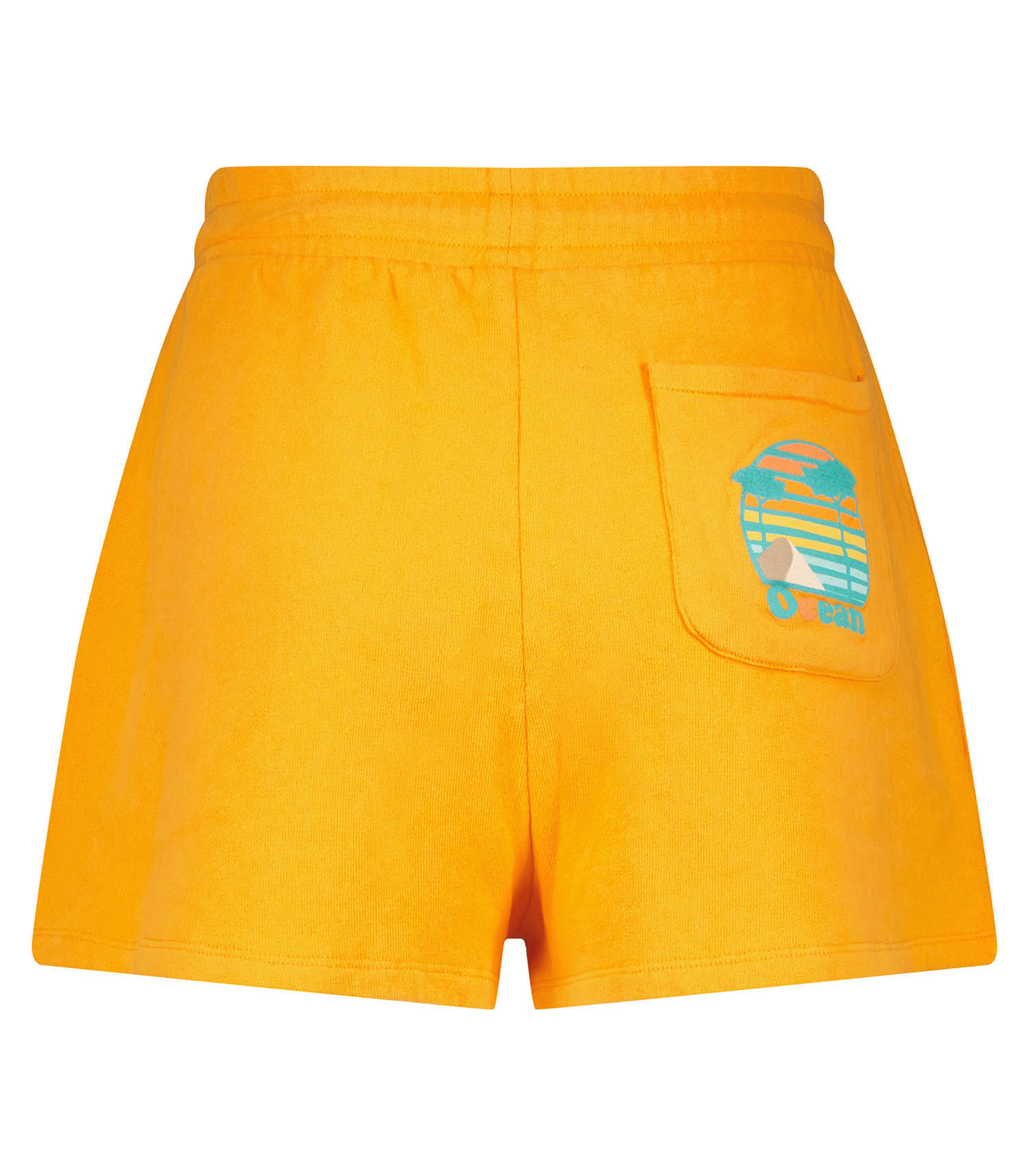 On craque pour le style sportswear rétro du short en coton biologique Océan Orange, version short de jogging à taille élastique et cordons de serrage, décoré sur la poche arrière d'un imprimé Océan qui fleure bon le coucher de soleil au bord de l'eau...