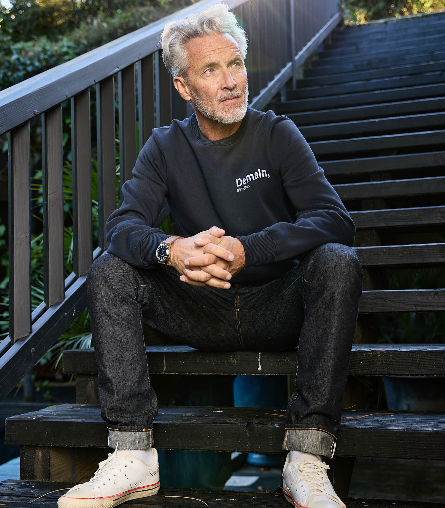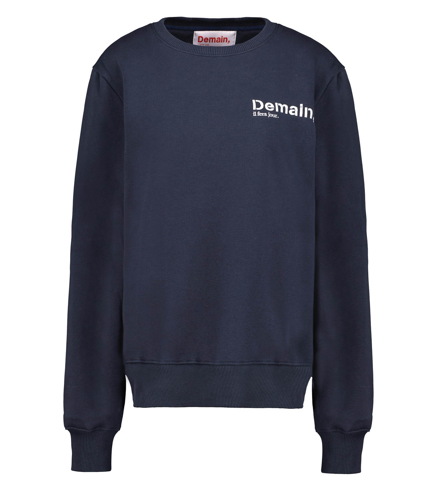 Sweat-shirt homme The Original Heart Embroid Navy de la marque Demain, il fera jour. Confectionné en coton de haute qualité, ce sweat-shirt présente le nom de la marque en blanc, délicatement placée côté cœur pour une touche subtile et inspirante. Alliant confort et style, il est parfait pour rehausser vos tenues décontractées avec une note chic et contemporaine.
