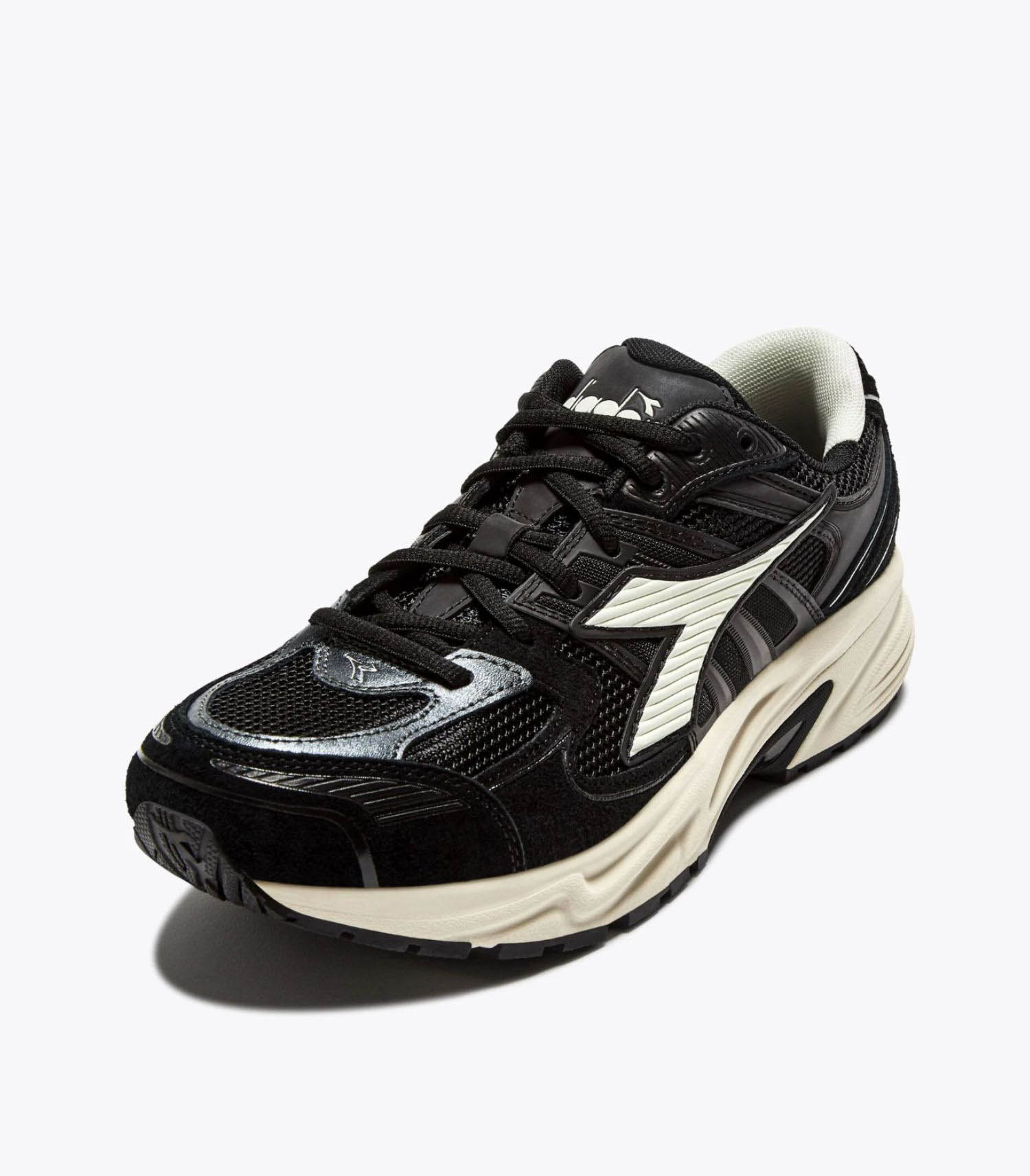 Les Diadora Mythos Star incarnent l'alliance parfaite entre héritage sportif et style contemporain. Inspirées des baskets de running des années 2000, elles revisitent le design "run-core" avec une touche moderne. Le coloris Black offre une silhouette épurée et polyvalente, idéale pour compléter une tenue urbaine ou sportive.