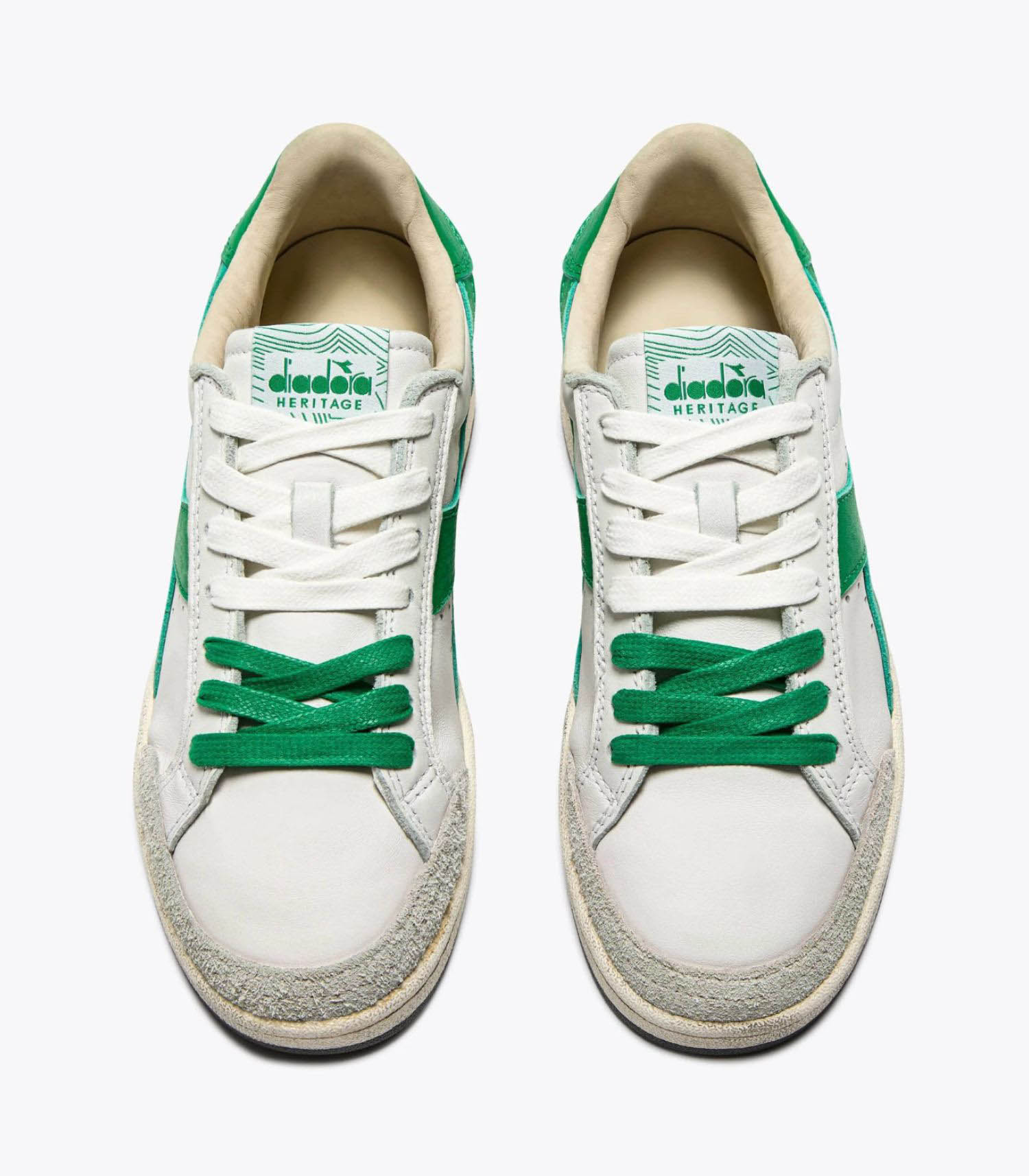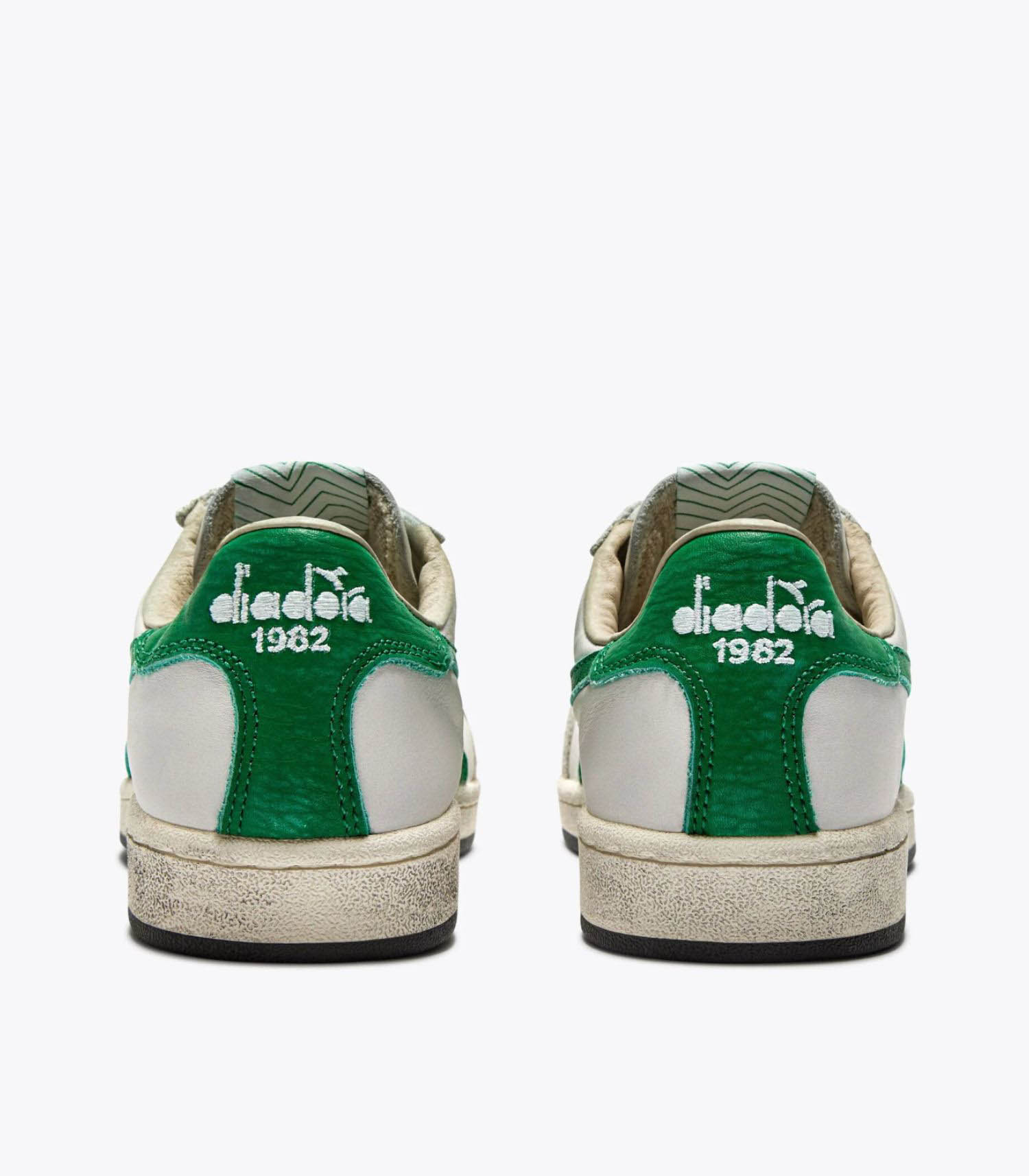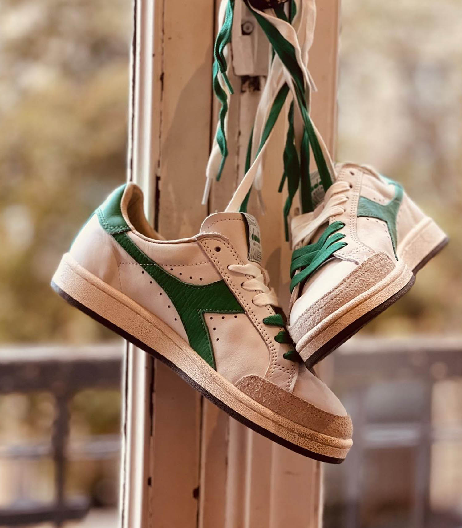 La Diadora Prestige Used incarne l'élégance intemporelle du style rétro-tennis. Confectionnée en cuir premium et daim de vachette, elle présente un traitement stone wash qui adoucit le cuir, ainsi qu'un léger cirage qui confère un look usé distinctif. Ce modèle premium allie confort et esthétique, avec une semelle en caoutchouc et des lacets en coton ciré.