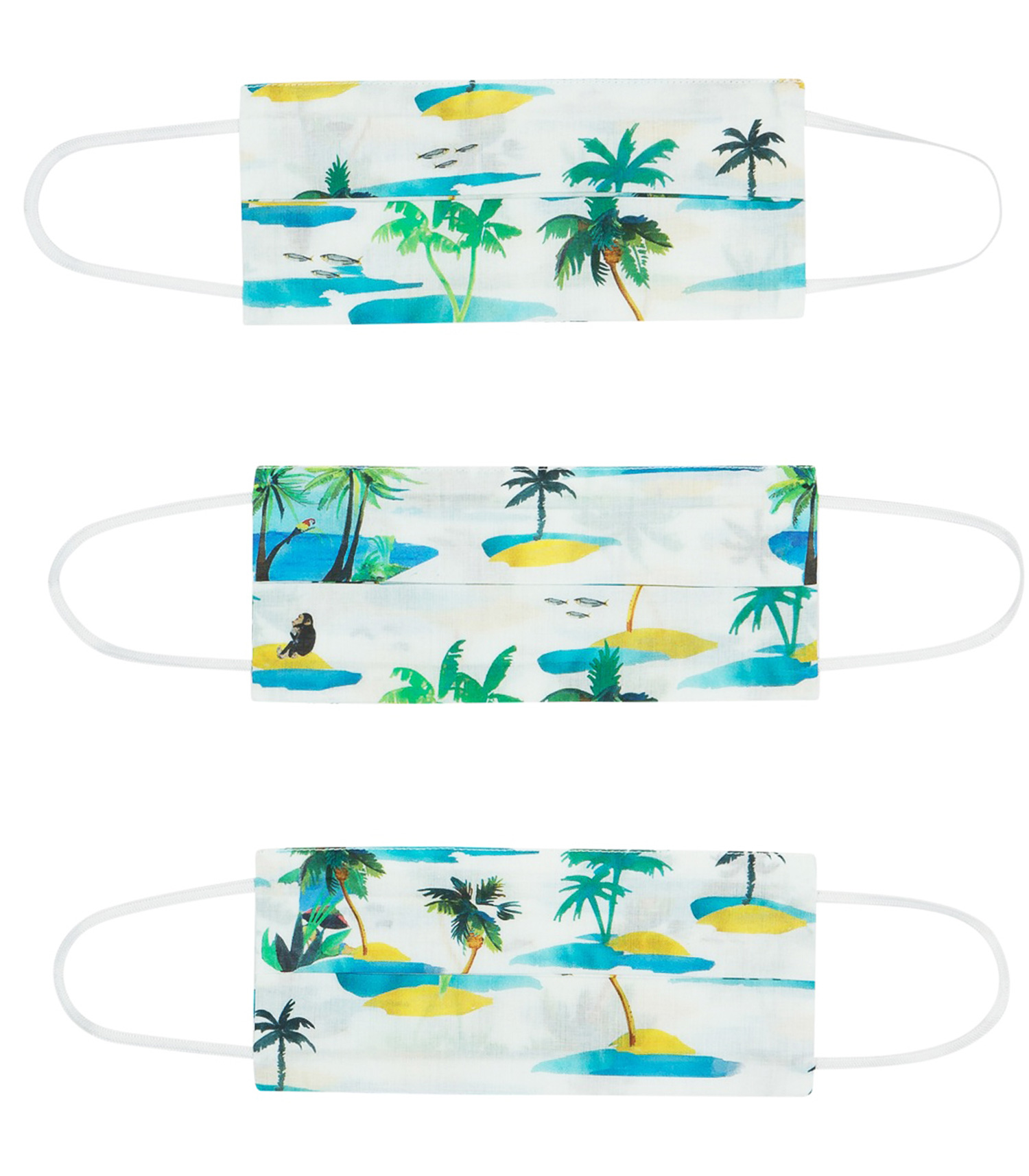 Portez de la couleur et de l'exotisme à votre visage avec ce lot de 3 masques en coton G.Kero décorés d'un imprimé tropical unique. Ce dessin réalisé par l'artiste de G.Kero s'intitule "Palm Island" et invite à l'évasion.