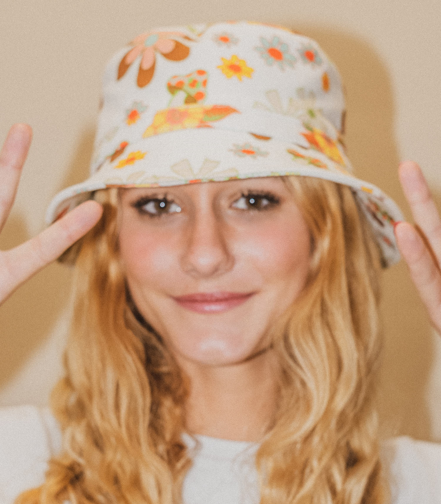 Osez l'orginalité avec le bob Darel White signé Garçons Infidèles, une pièce issue de la collection printemps-été 2021 nommée "Fall To Learn", et décoré de l'imprimé Pyschedelic Flowers apposé sur une toile blanche. Parfaite pour accessoiriser un look un en clin d'oeil.