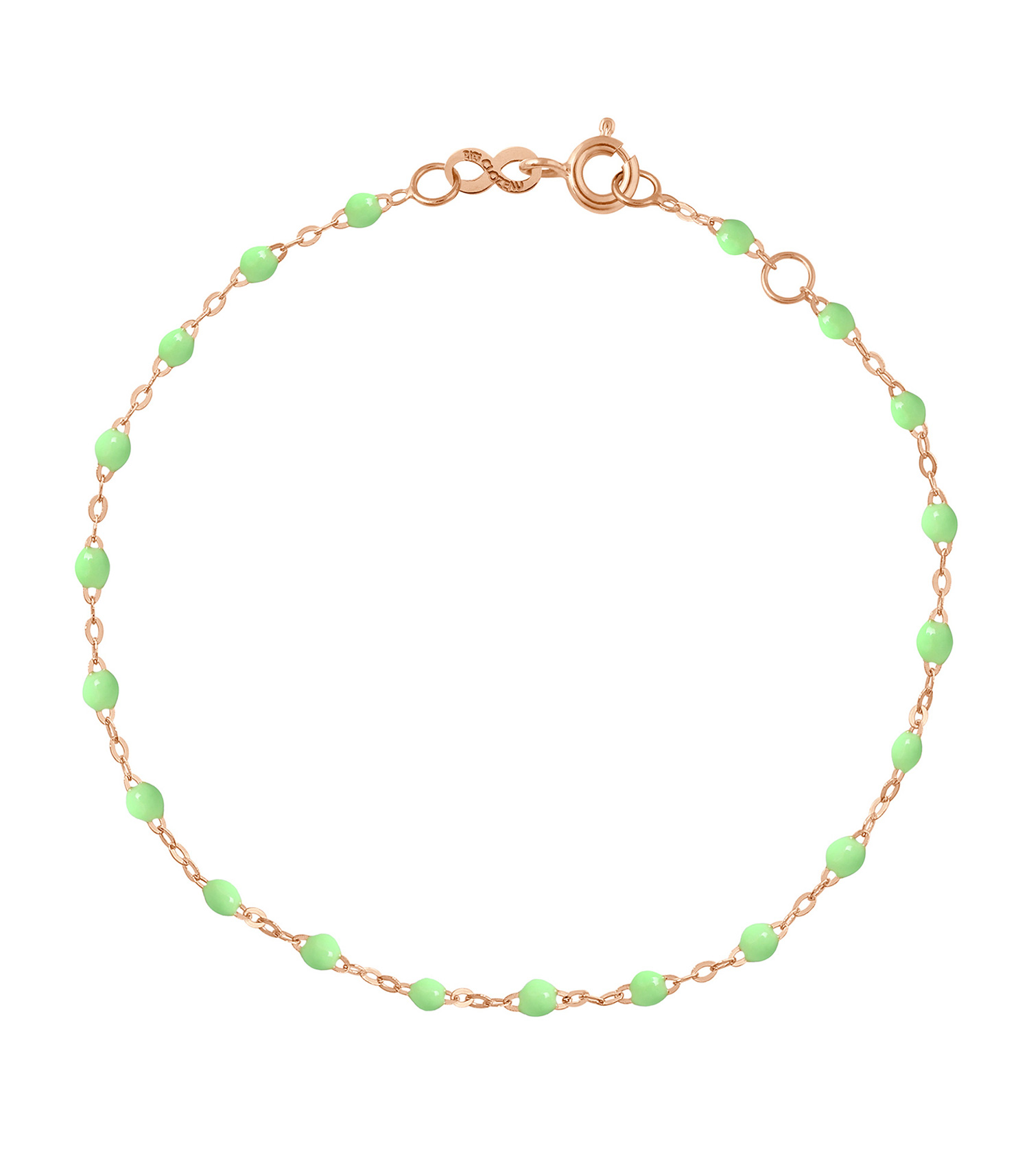 Les tons des bracelets or rose et perles de résine Gigi Clozeau sont nombreux, l’un d’entre eux se combinera sans effort à la chemise ou au top que vous aurez choisi.