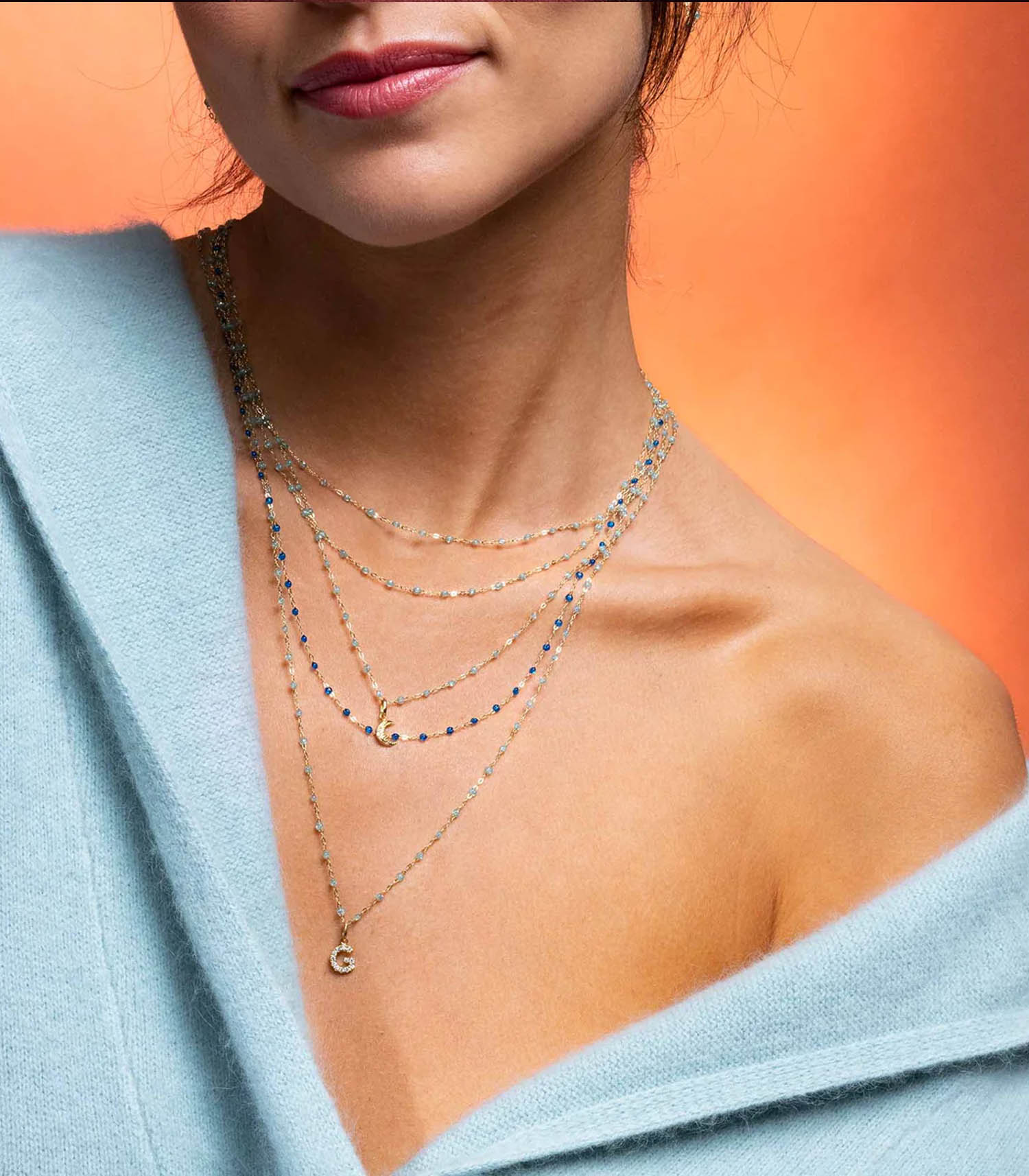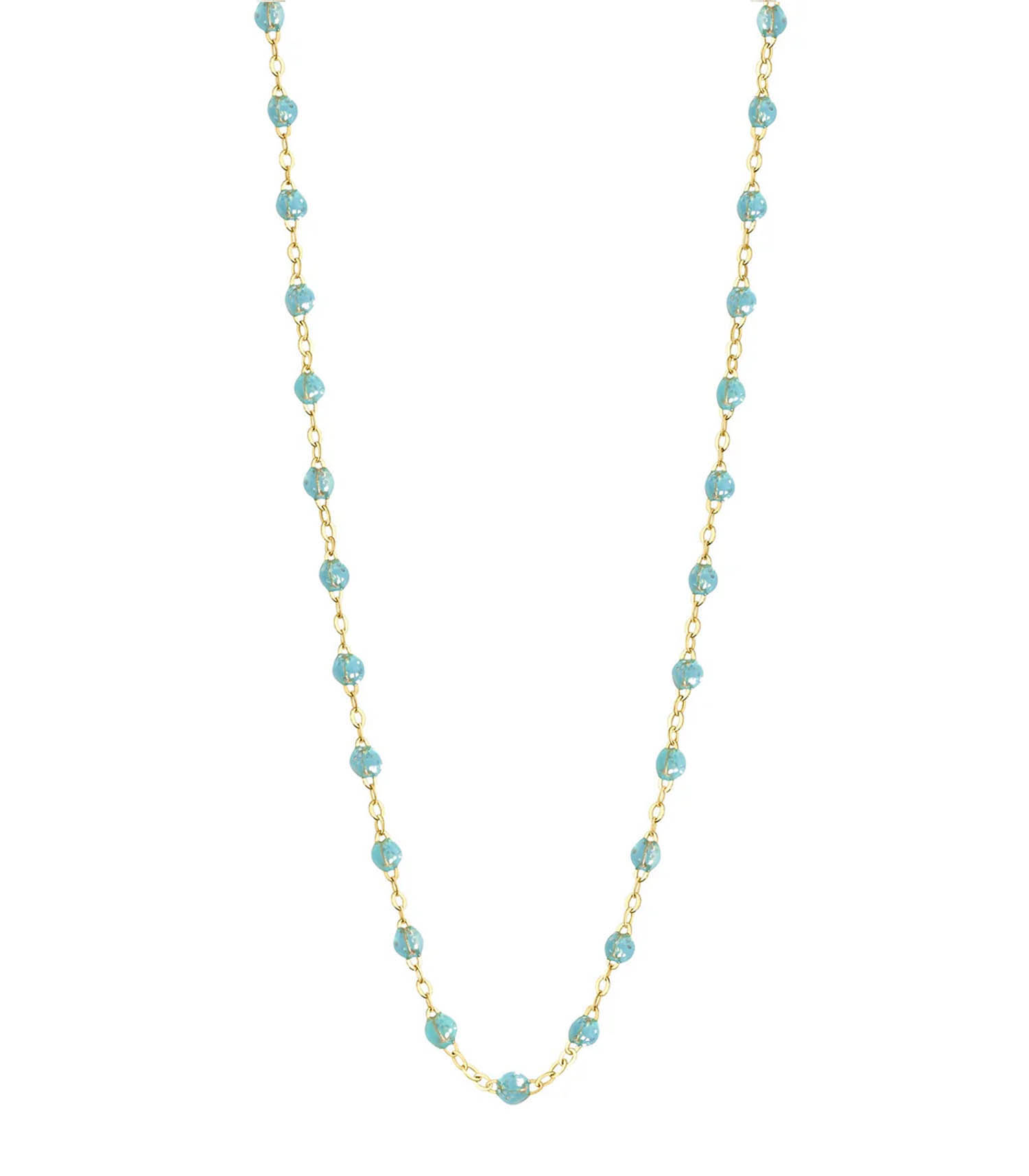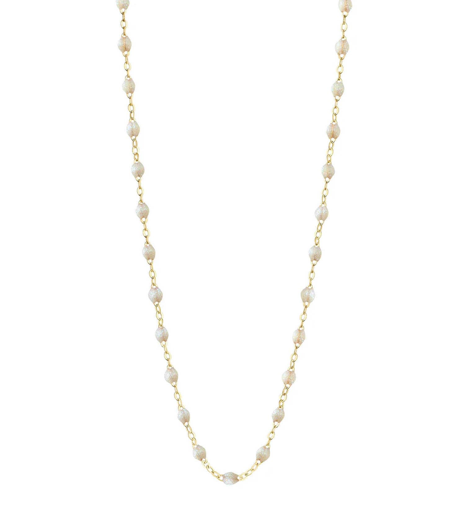 Indisponible en stockCe collier en or jaune 18 carats et perles de résine Gigi Clozeau est un indispensable à porter en toutes circonstances.