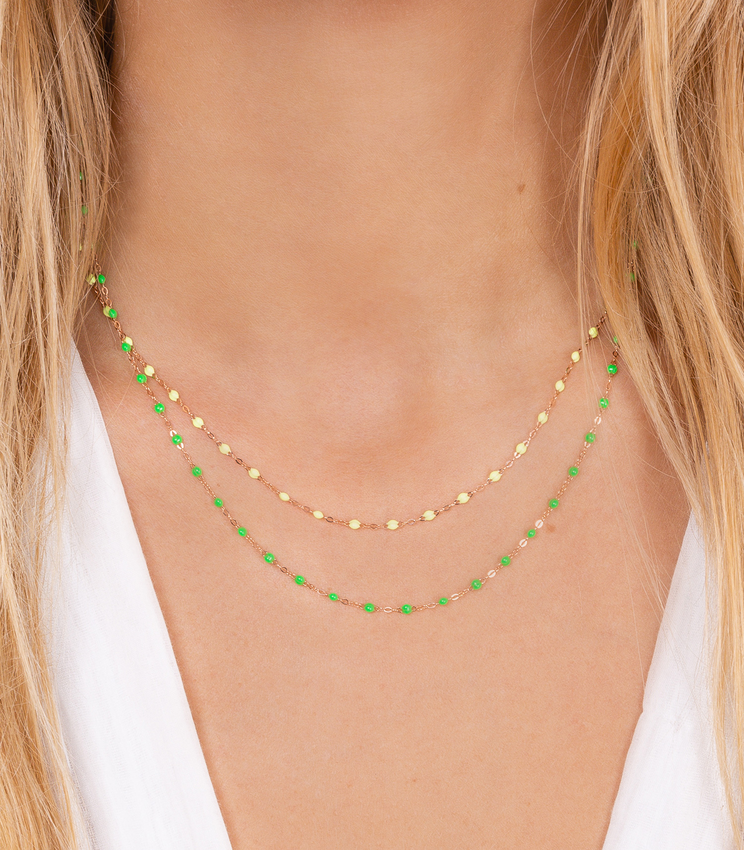Ce collier or rose et perles de résine fluo Gigi Clozeau séduit par ses nuances fraîches et toniques.
