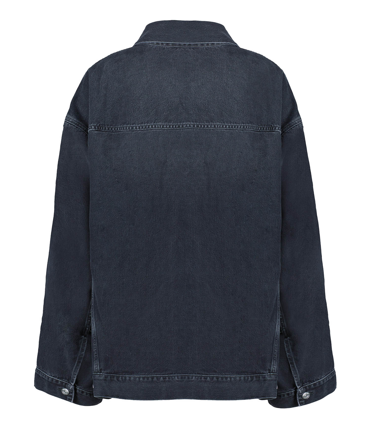Adoptez un look décontracté et moderne avec la veste Janet Haikure en toile denim noire fluide. Conçue dans un esprit jean oversized, cette veste allie confort et style grâce à ses manches longues larges et droites et son col classique. Pratique et élégante, elle dispose de deux poches passepoilées sur les côtés. Les poignets montés, dotés de boutons en métal argenté, et le bas de la veste avec pattes de serrage apportent un ajustement parfait et une finition impeccable. Les surpiqûres noires ton sur ton ajoutent une touche discrète et sophistiquée à cette pièce incontournable de votre garde-robe.