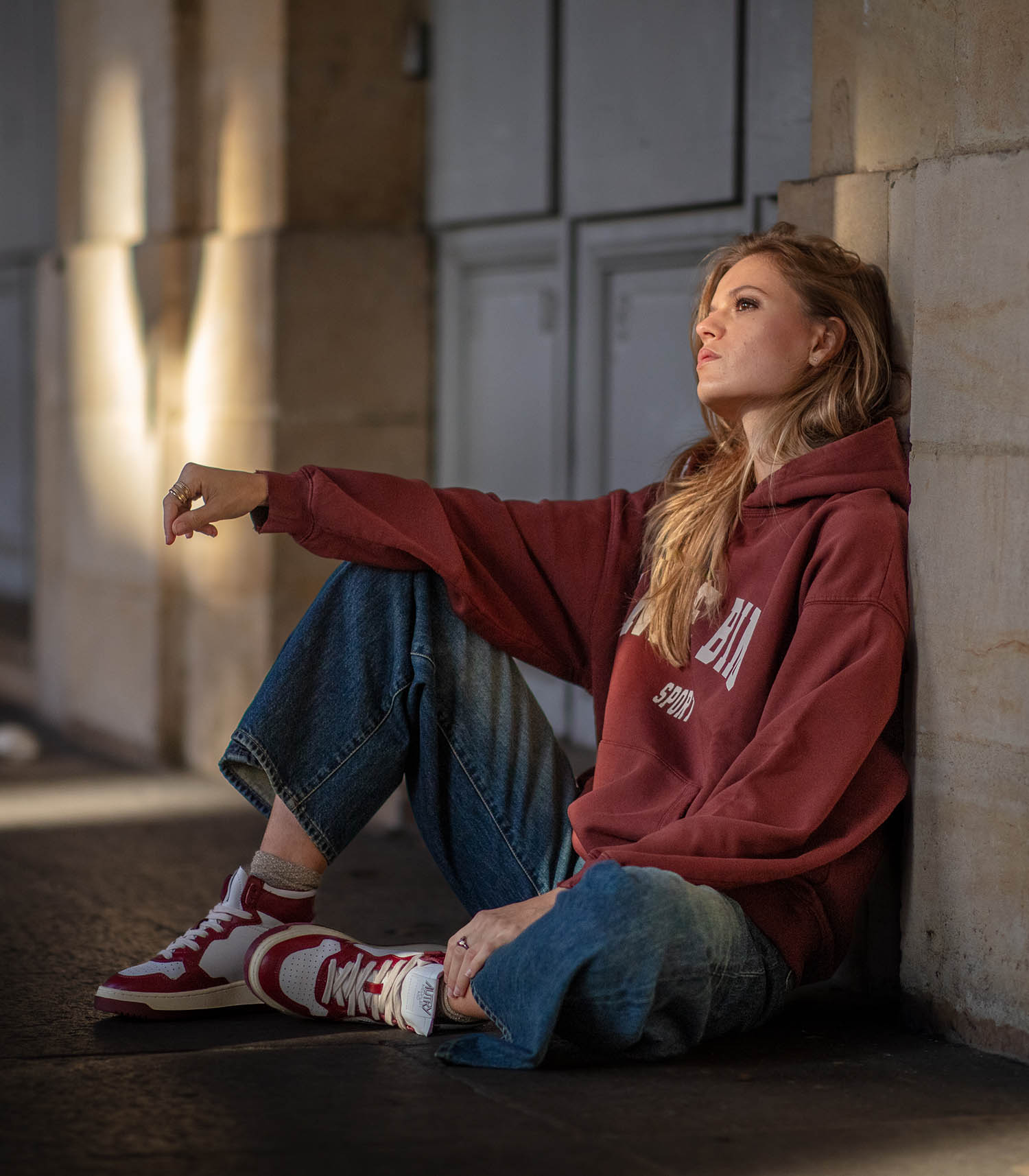Le mannequin porte une taille 36 et mesure 170 cm.
