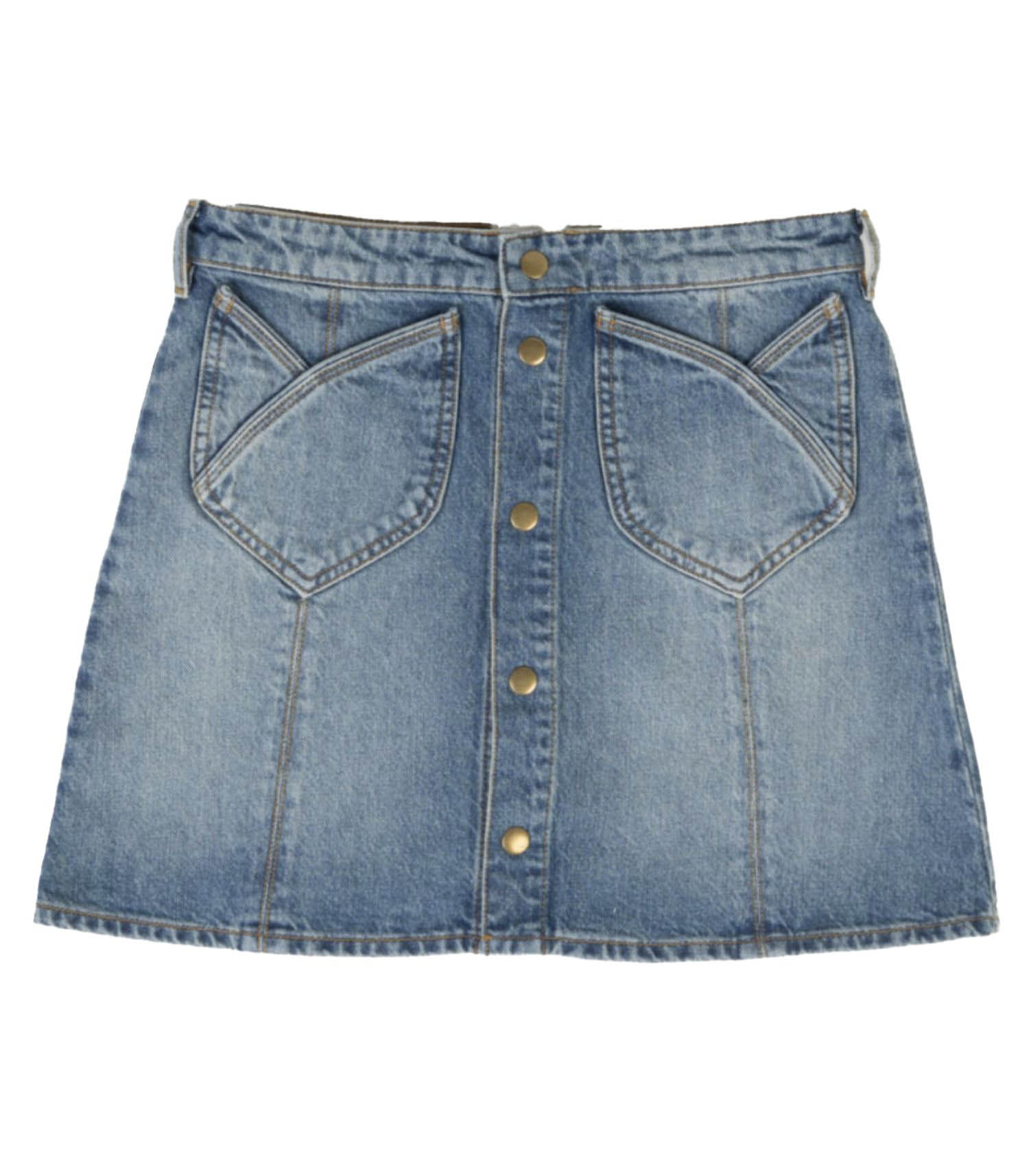 Avec ses poches en forme de fleurs, son délavage vintage et ses boutons bronze sur le devant, la jupe MINI FREEDOM incarne un style bohème et joyeux. Son look rétro s’adapte à toutes les saisons : en été avec un débardeur, en hiver avec un pull et des bottes. Un vrai coup de cœur au charme libre et intemporel.
