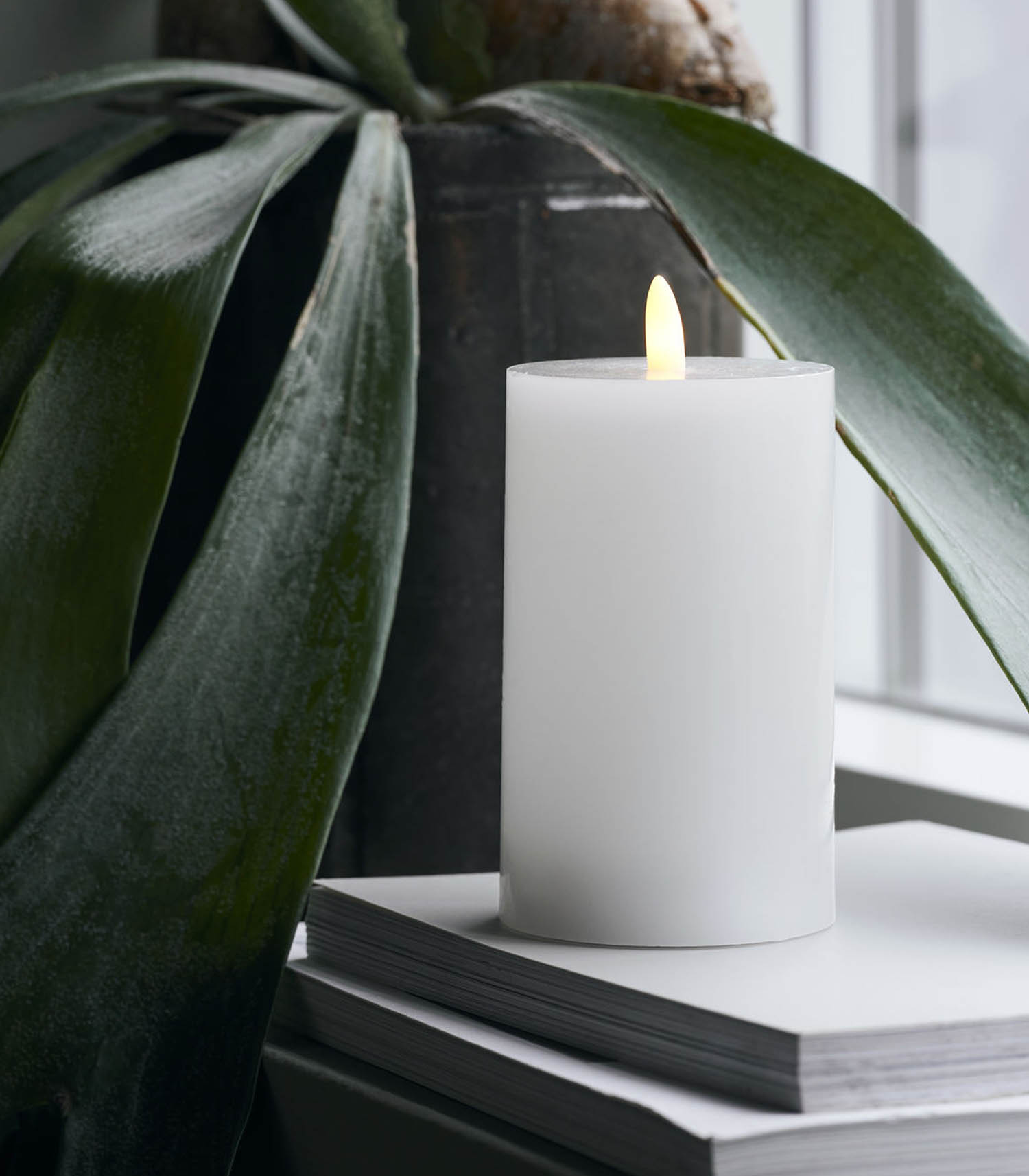 Bougie LED Blanche de la marque House Doctor, une alternative aux bougies en cire. Une pièce idéale pour décorer votre intérieur et bénéficier d'une douce lumière, sans chaleur ni odeur de fumée. Adoptez-la seule ou créez une composition avec d'autres bougies de taille différente.
