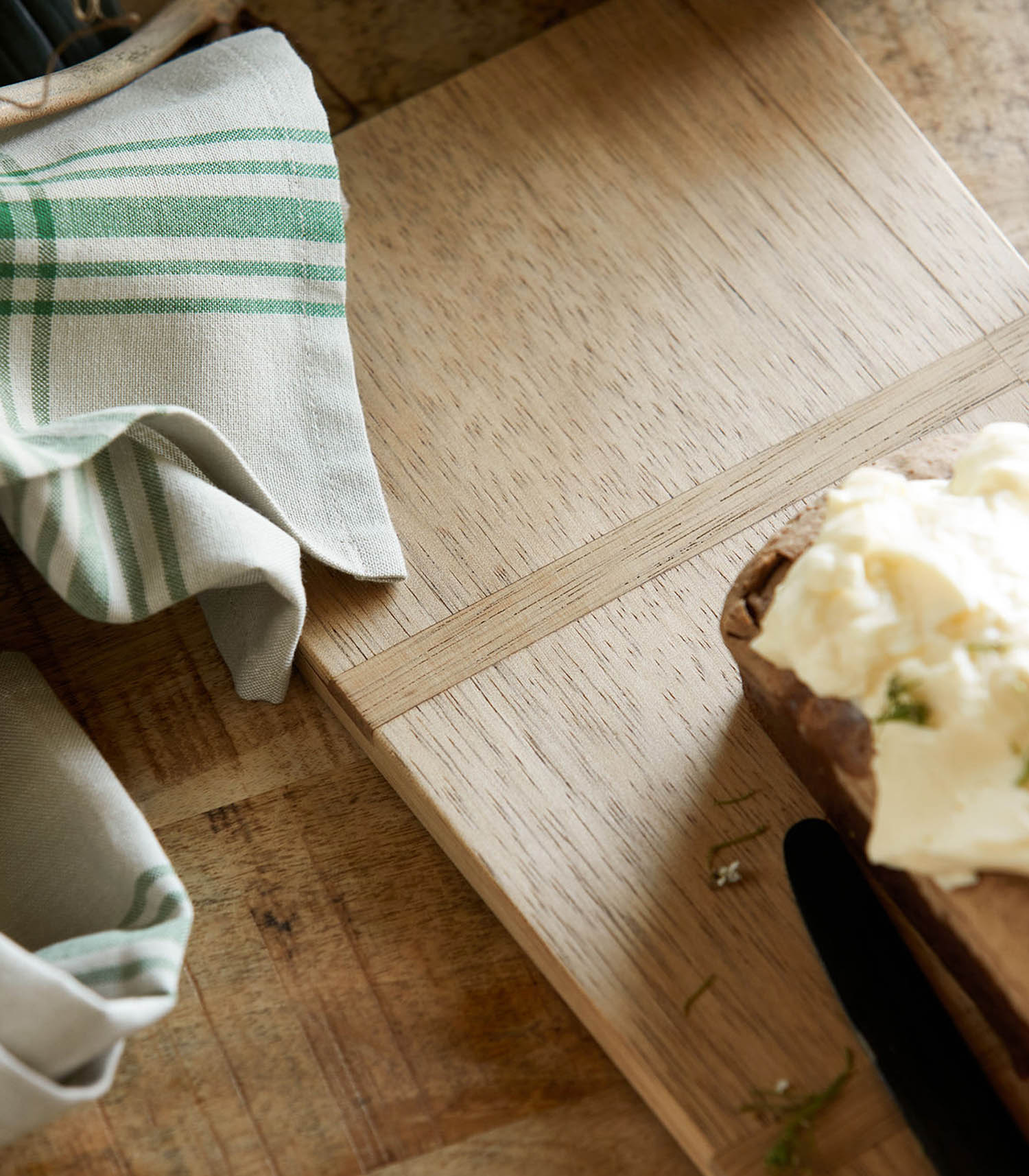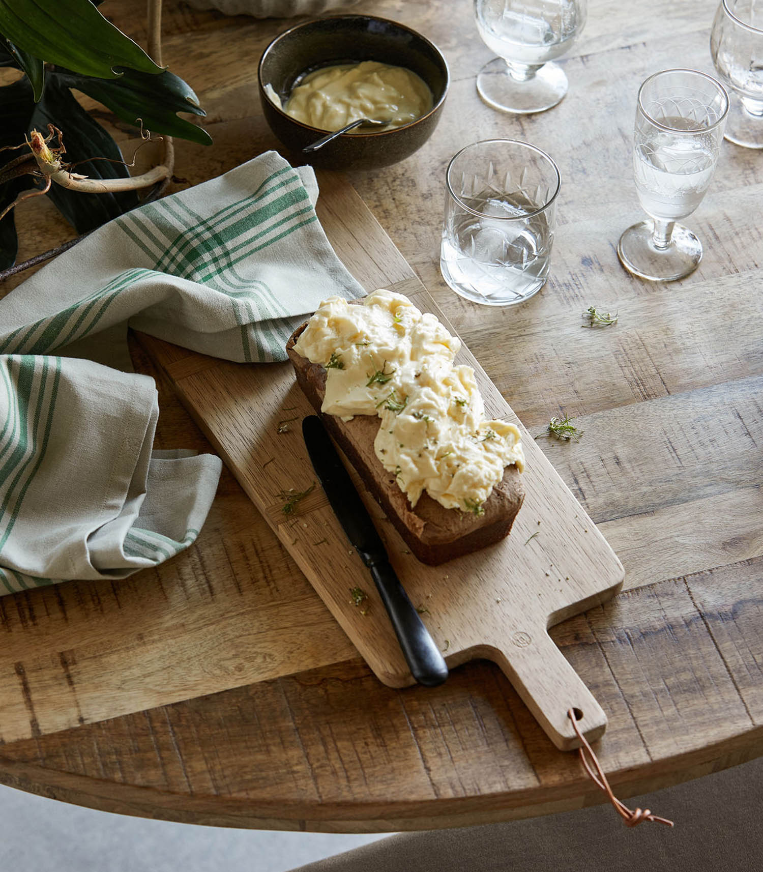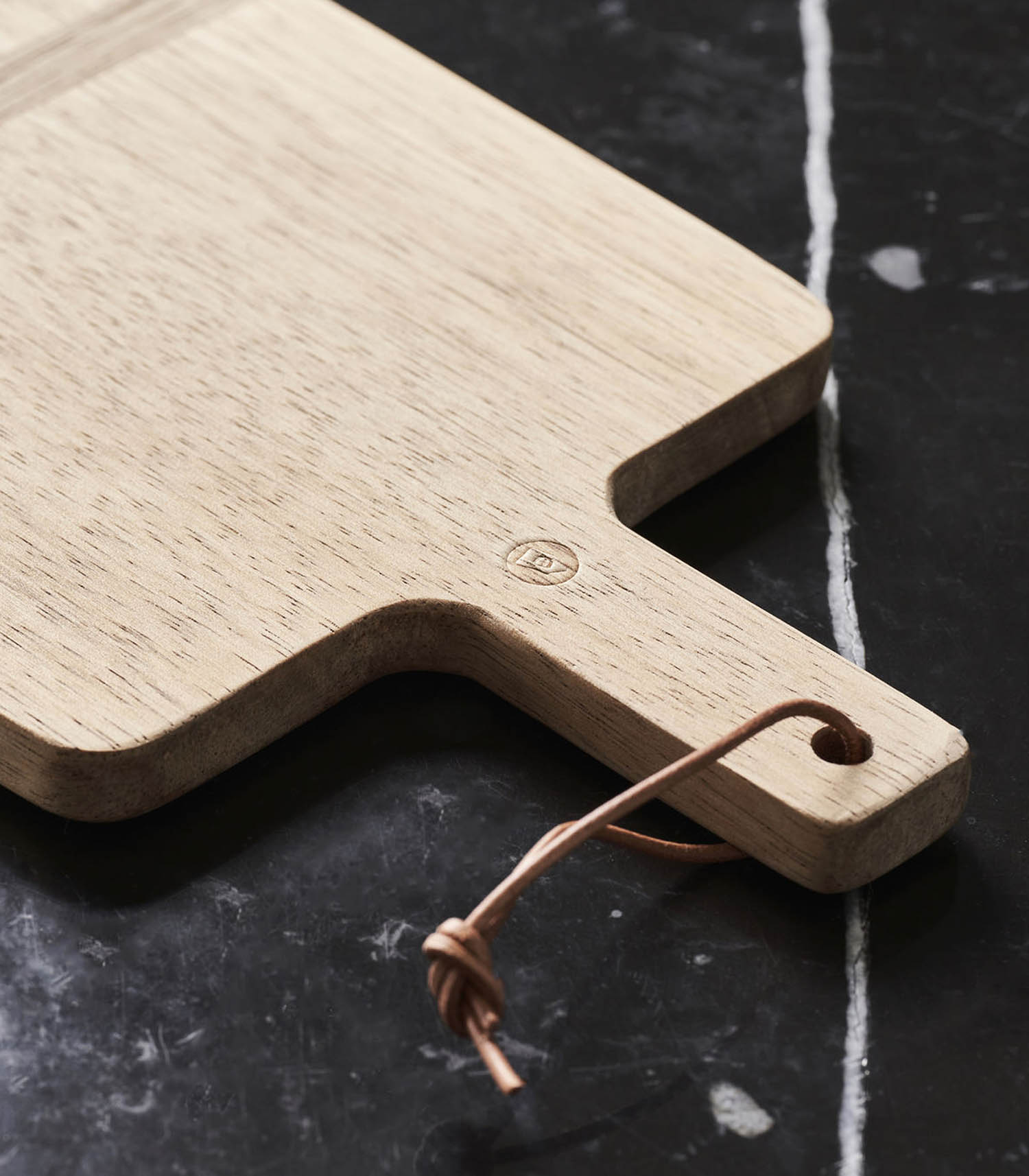Planche à Découper Nature de la marque House Doctor, dans un esprit campagne avec son joli bois brut et mat. À la fois pratique et décorative, elle trouvera sa place dans votre cuisine ou comme support pour de la décoration dans la pièce de vie. Deux marqueteries en finition garantissent que la planche à découper ne se déforme pas. Petite sangle en cuir brun au bout.