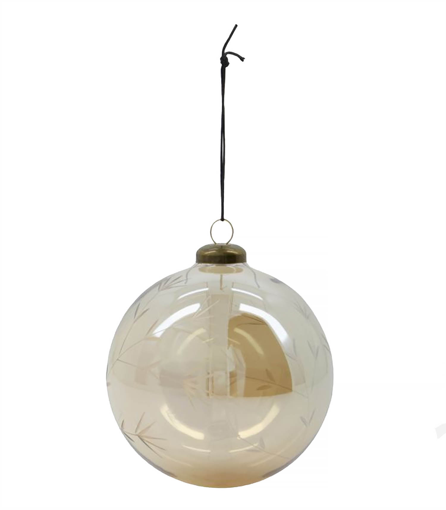 Set de 4 Boules de Noël Rayn Marron de la marque House Doctor. Les boules sont conçues en verre légèrement teinté de beige pour un esprit chaleureux et raffiné. Décor feuillage délicat ton sur ton.