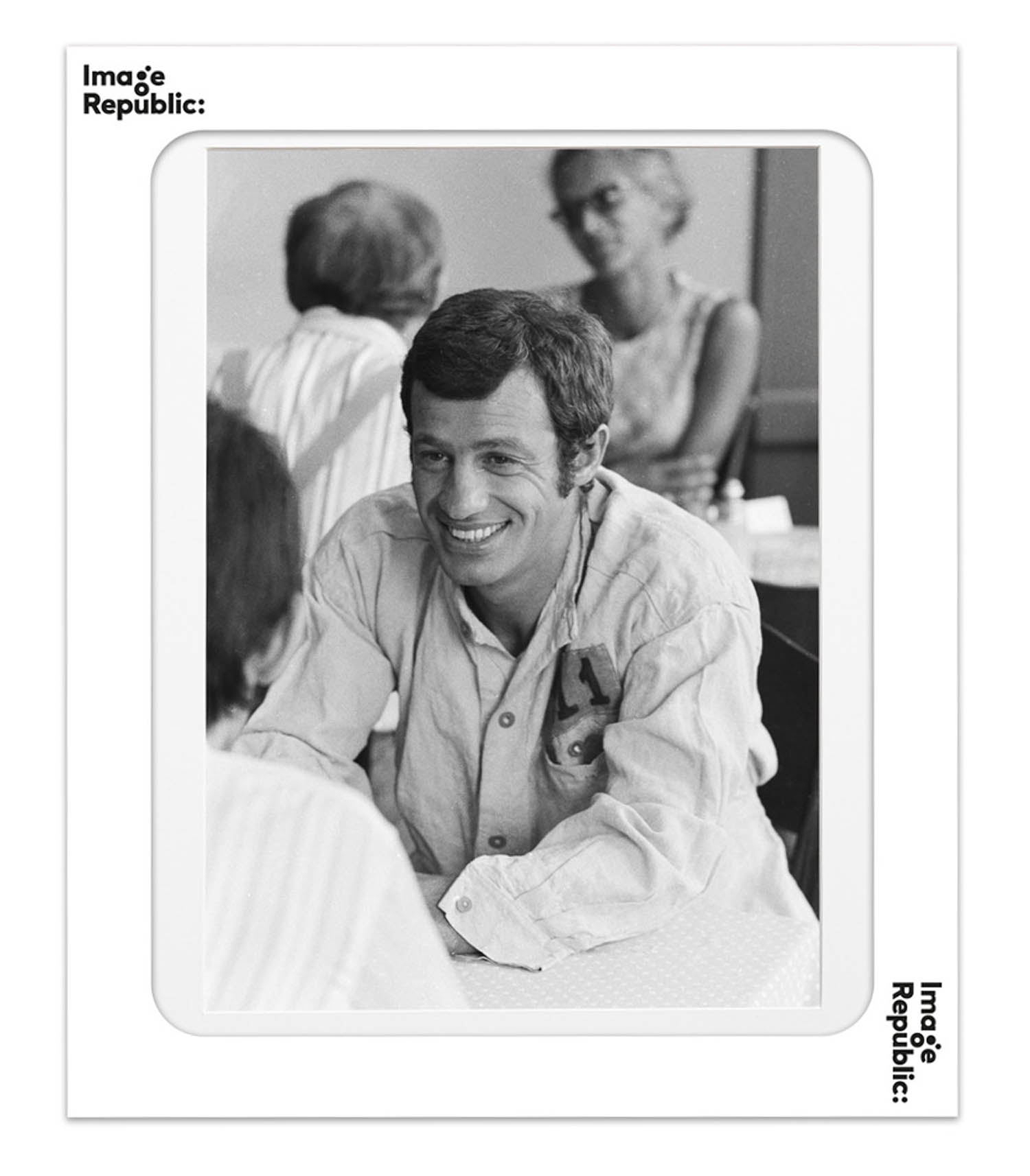 Affiche Belmondo Le Cerveau éditée par Image Republic, un cliché en noir et blanc de l'acteur Jean-Paul Belmondo sur le tournage du film Le Cerveau en 1969. Une pièce parfaite pour agrémenter votre intérieur d'une touche rétro.