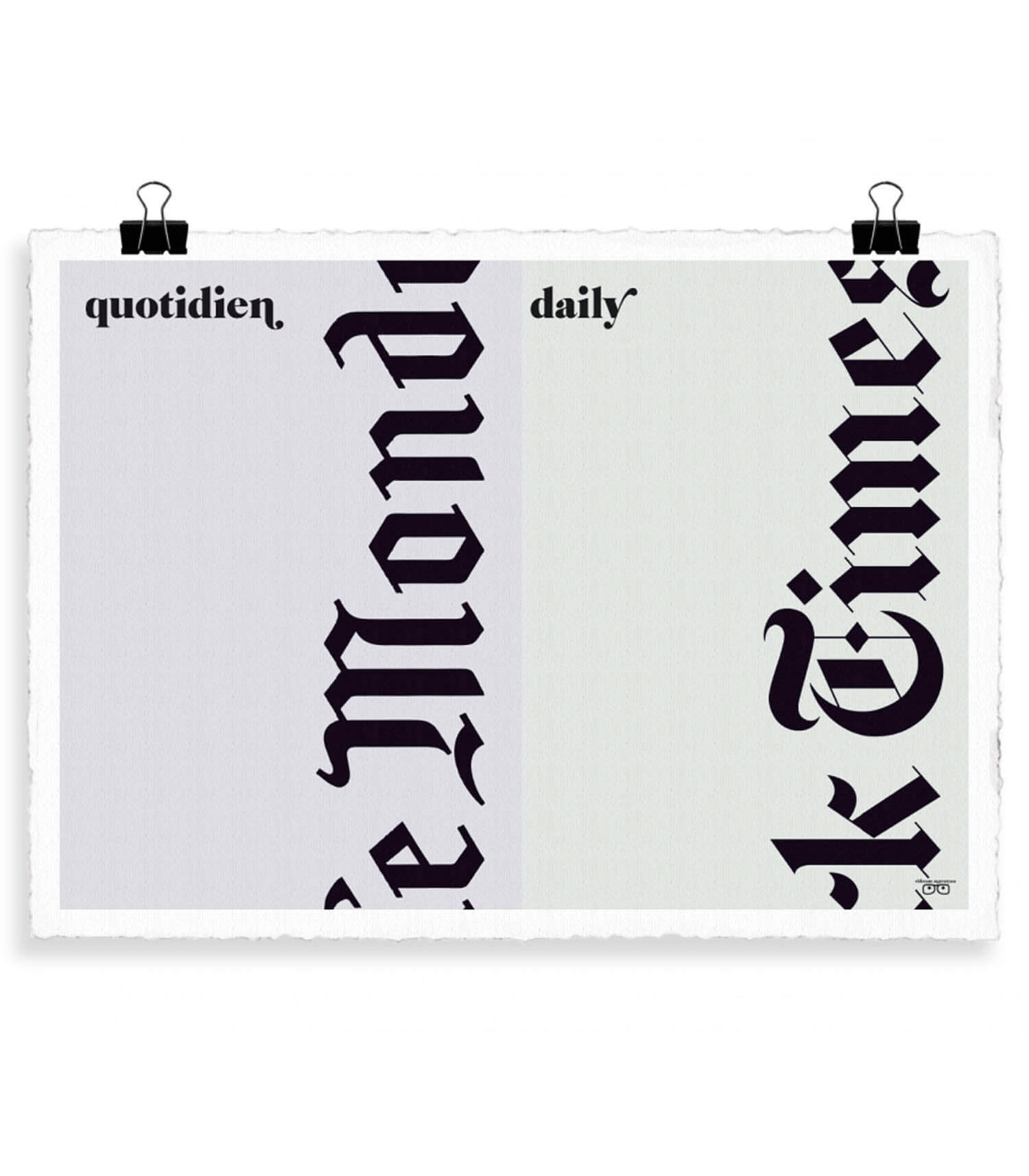 Que vous soyez plutôt Le Monde ou The Times, vous serez forcément charmé par l’affiche Le Journal 56 x 76 cm, éditée par Image Republic. Les amoureux de beaux papiers et d’art succombent à cette illustration de Vahram Muratyan, imprimée en France sur Velin d’Arches 250 grammes de Canson.
