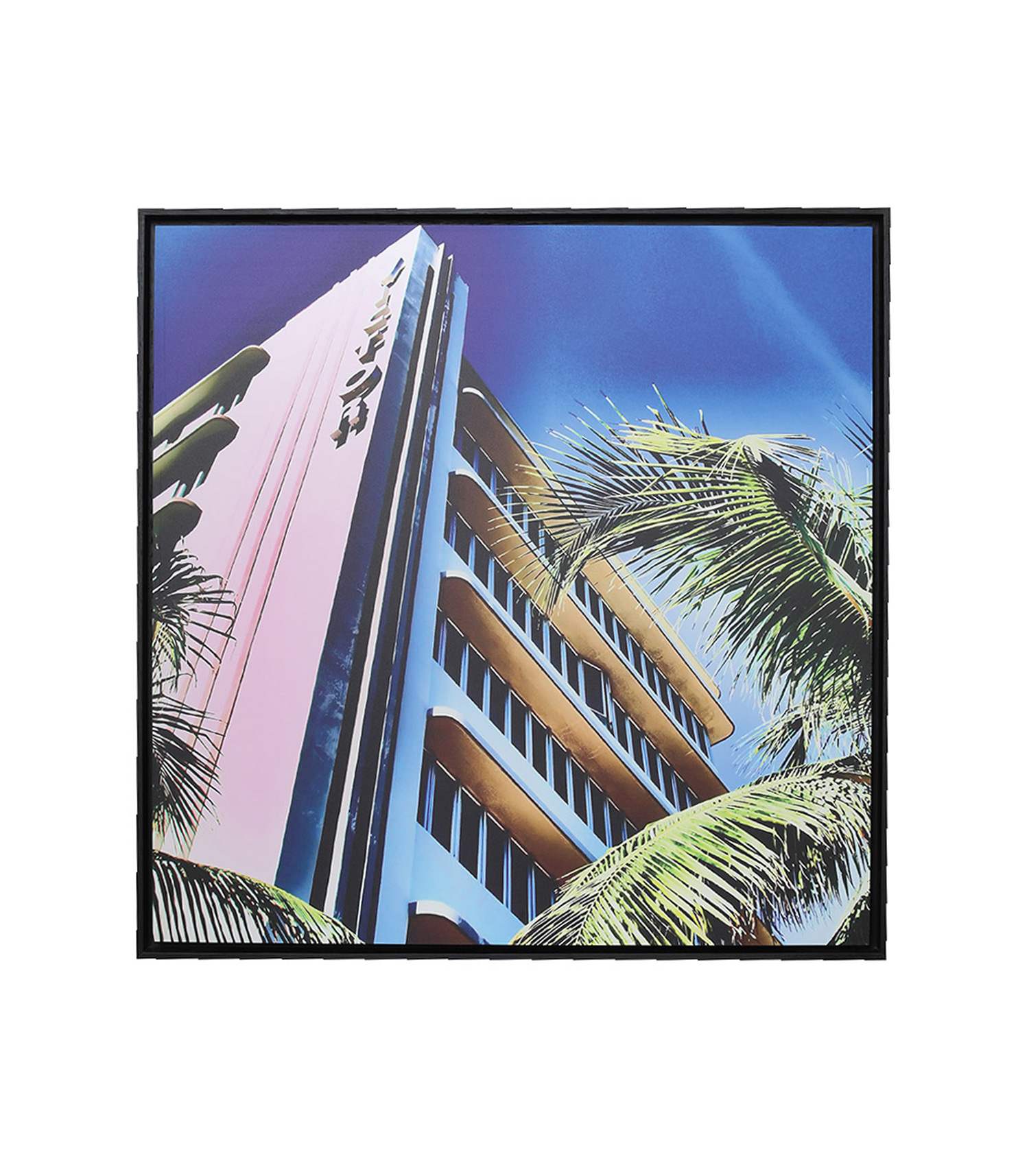 Tableau l'Iconolâtre référence 0062 édité par Image Republic, une illustration rétro & colorée représentant un hotel et des palmiers.
