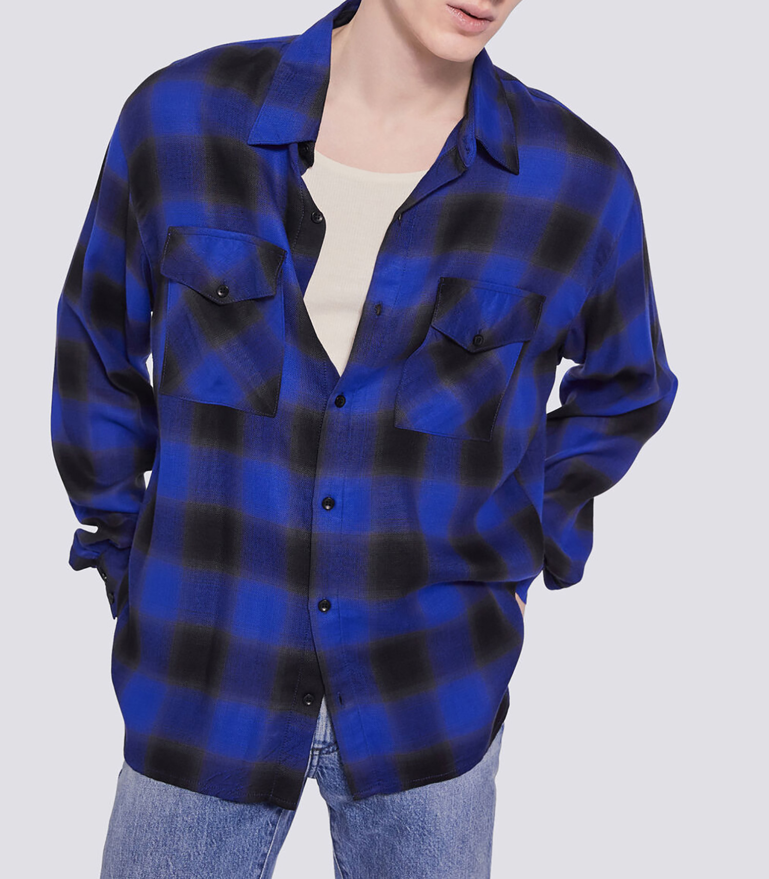 La fameuse chemise à carreaux masculine, proposée par Iro dans un bleu électrique rock et mode. La chemise Zéphir réalisée en 100% viscose est légère et agréable à porter.
