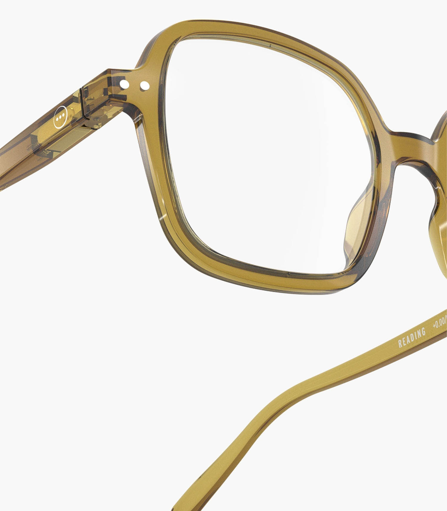 Lunettes de lecture Office Reading Golden Green de la marque IZIPIZI. Avec sa monture oversize cristalline au fini brillant, #OFFICE Golden Green illumine vos moments de lecture. Pensée pour offrir un confort visuel optimal, elle conjugue précision et élégance, à la maison comme au bureau. Un accessoire raffiné qui fait rimer style et clarté, page après page.