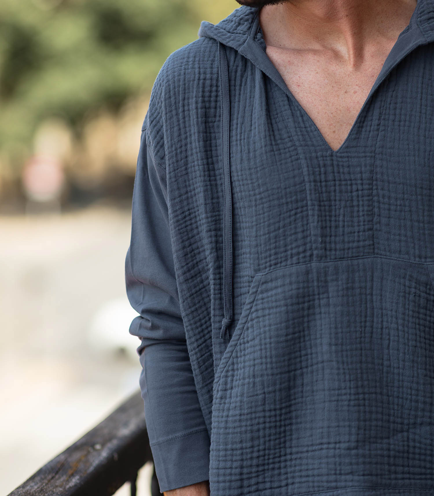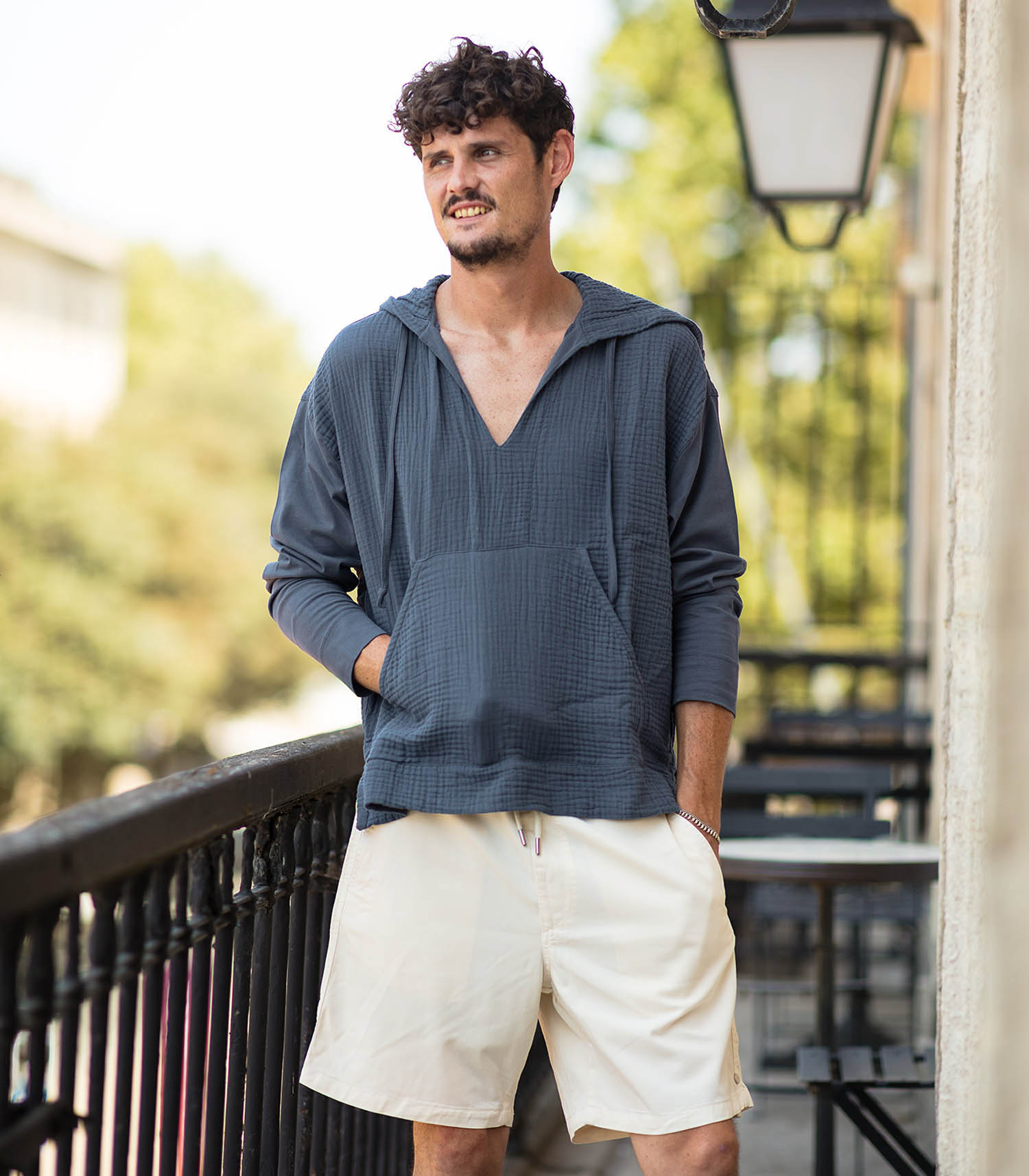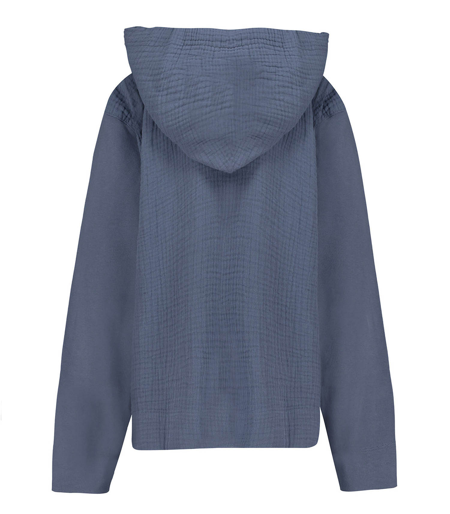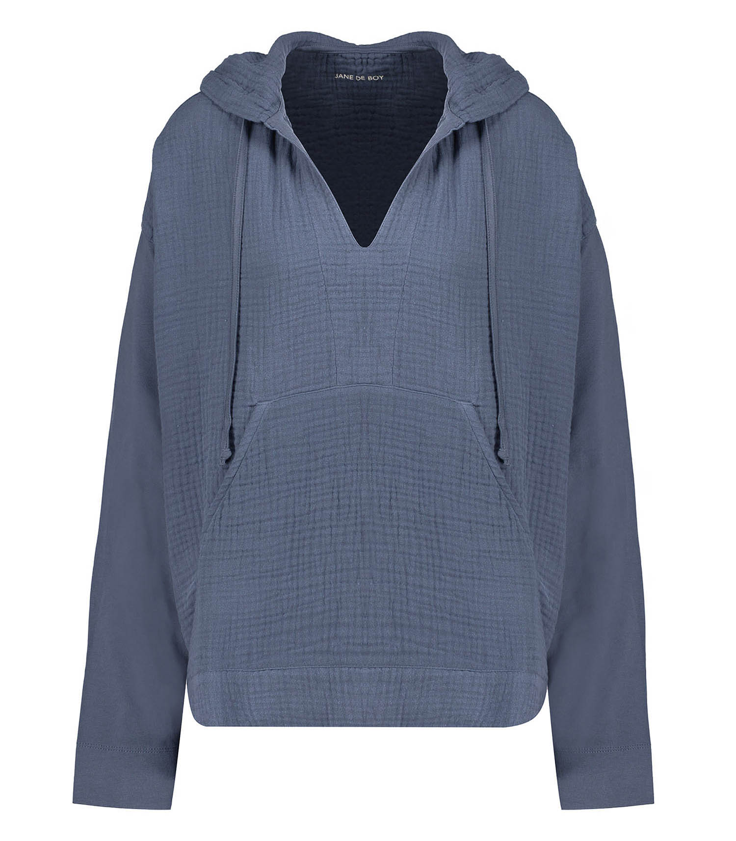 Sweat-shirt en gaze de coton signé Jane de Boy. Cette pièce intemporelle se présente sous un design à la coupe carrée et dans une matière texturée gaze de coton agréable. Coloris blue jean intemporel et mixte.