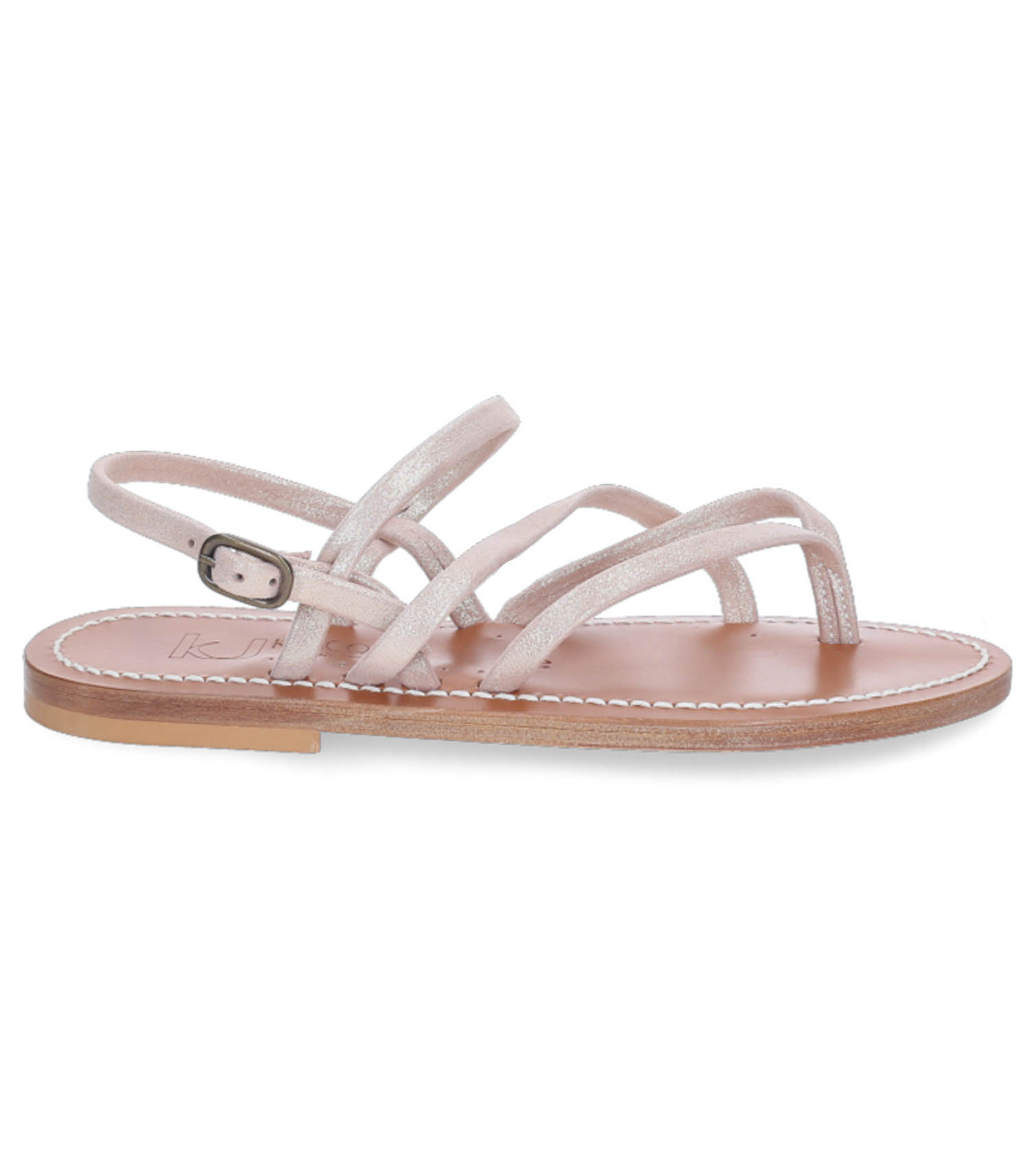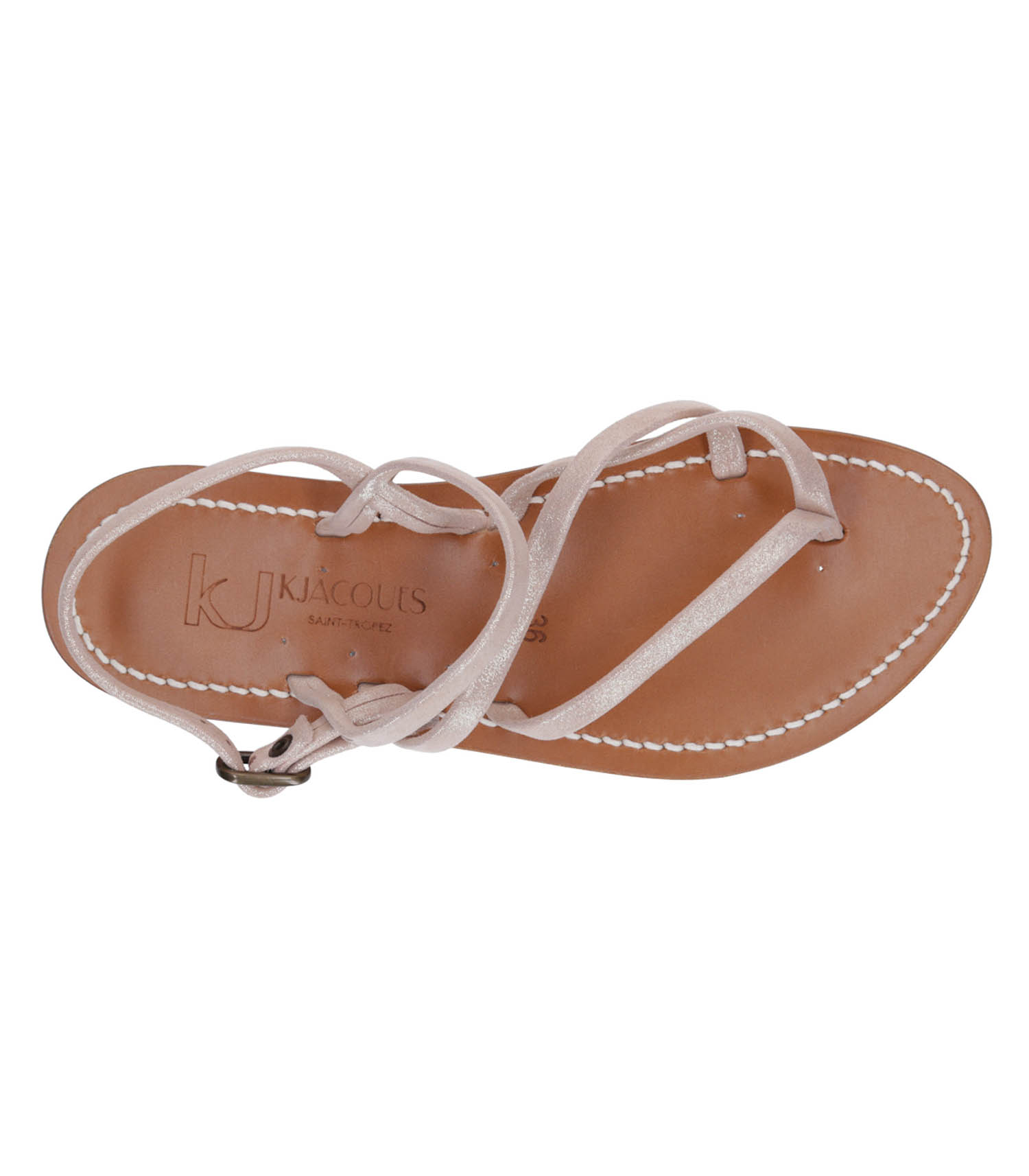Sandales Nemesis Doré de la marque K.Jacques, une paire féminine et élégante consittuée de fines lanières en cuir doré. On les porte aussi bien au quotidien que lors d'occasions spéciales.