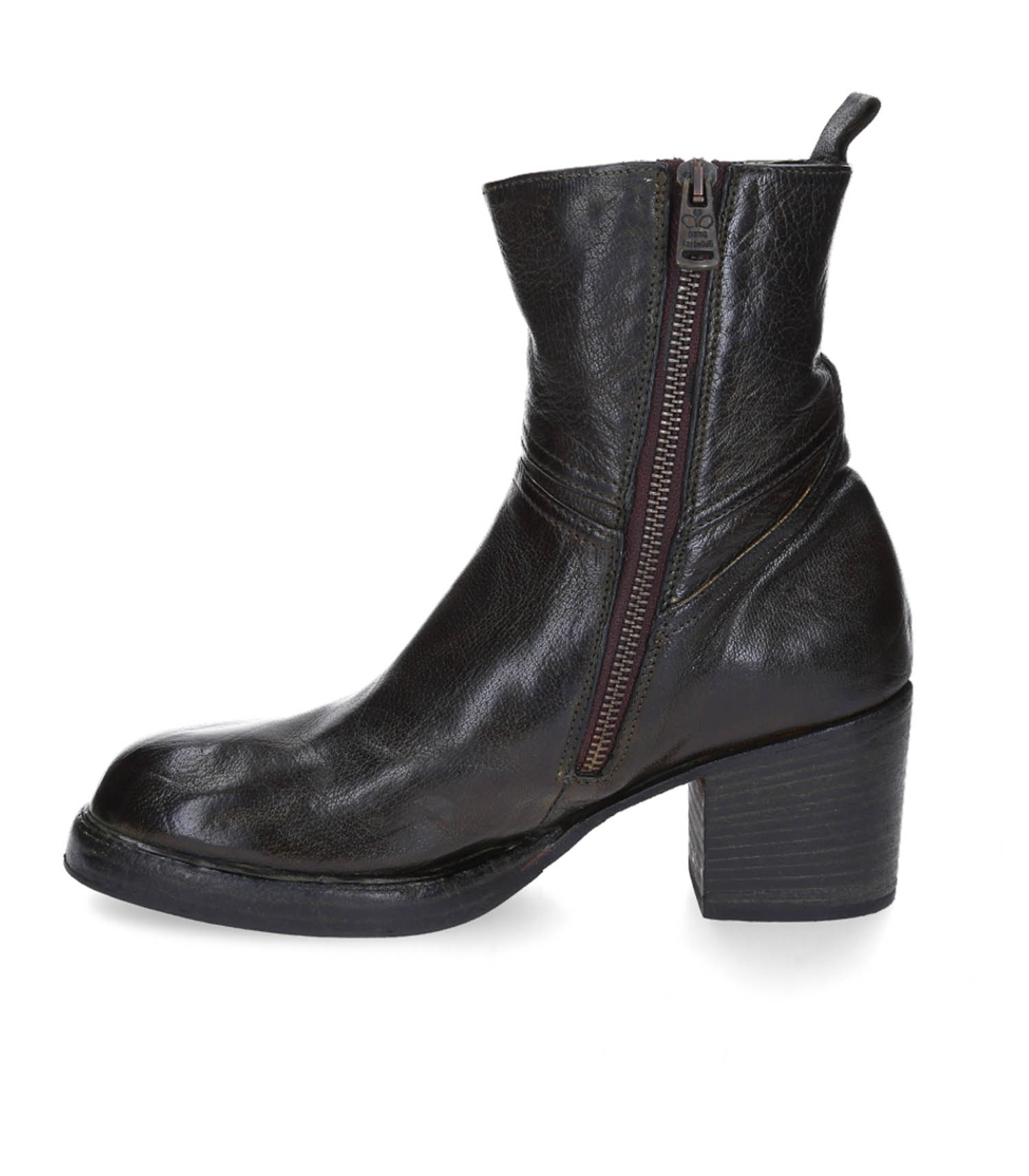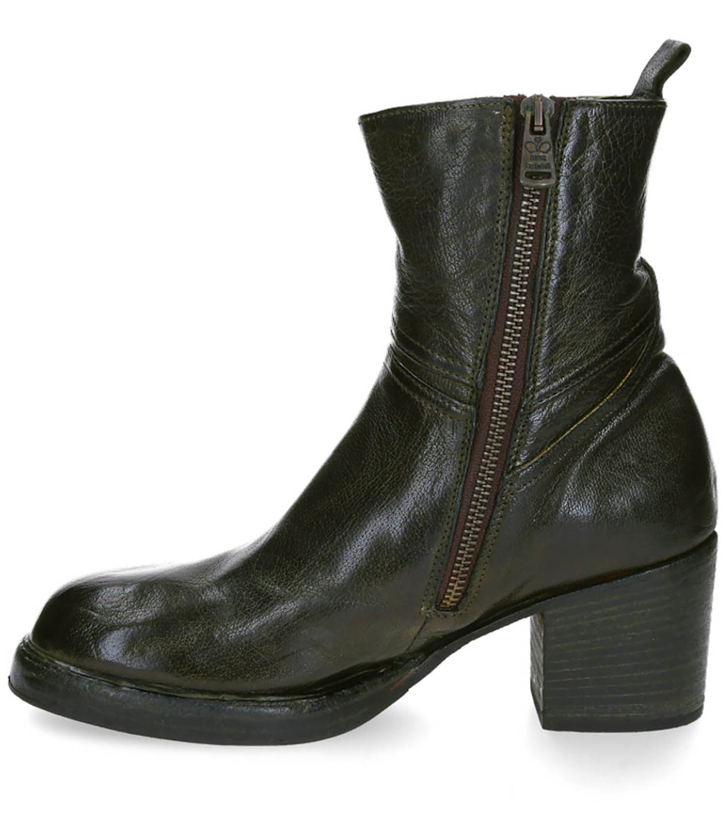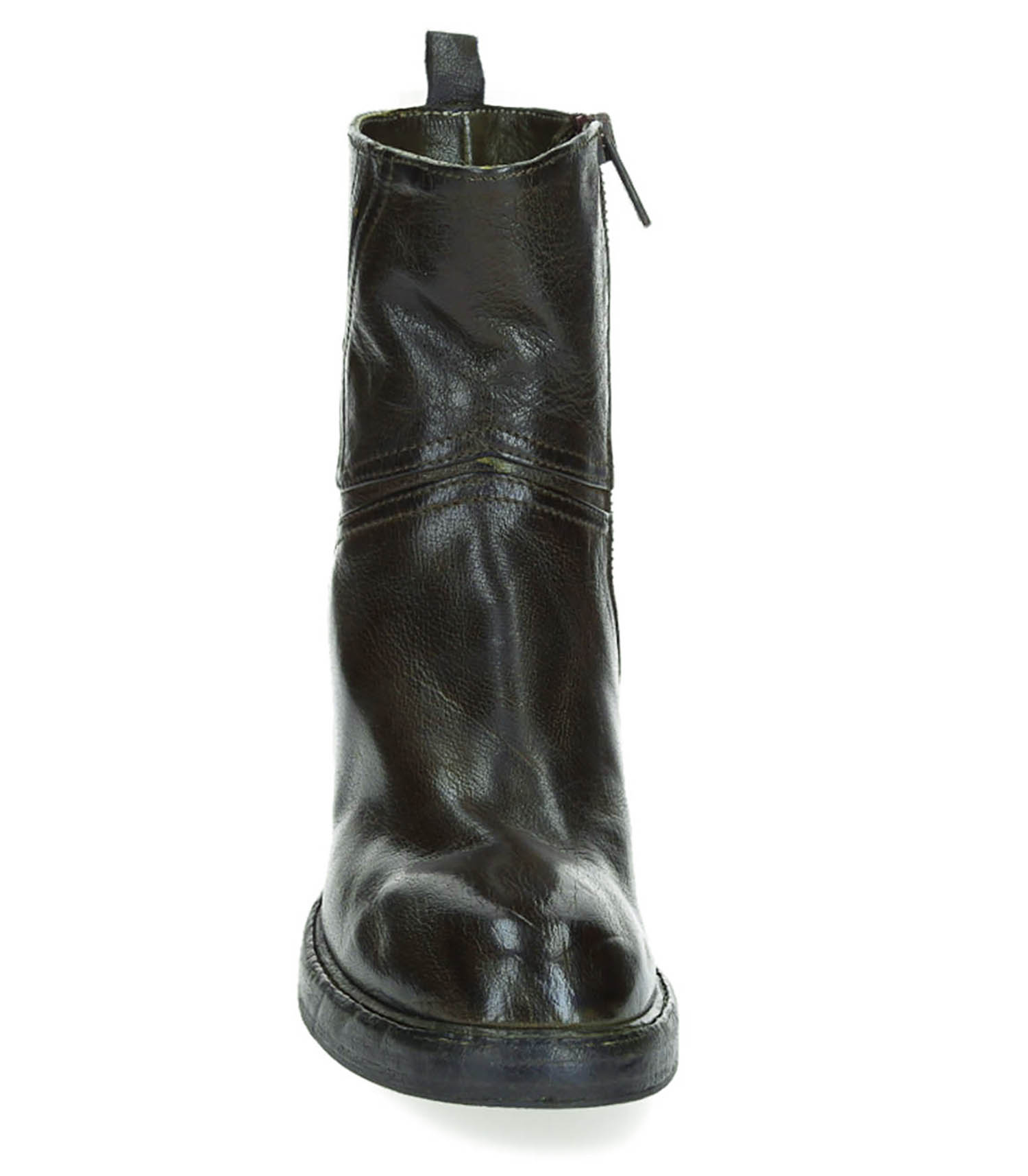 Boots avec empiècements en cuir Kaki de la marque King Tartufoli. Un modèle à l'allure un brin vintage qui apporte une touche authentique à vos tenues. On découvre un joli cuir souple légèrement grainé, aux reflets kaki.